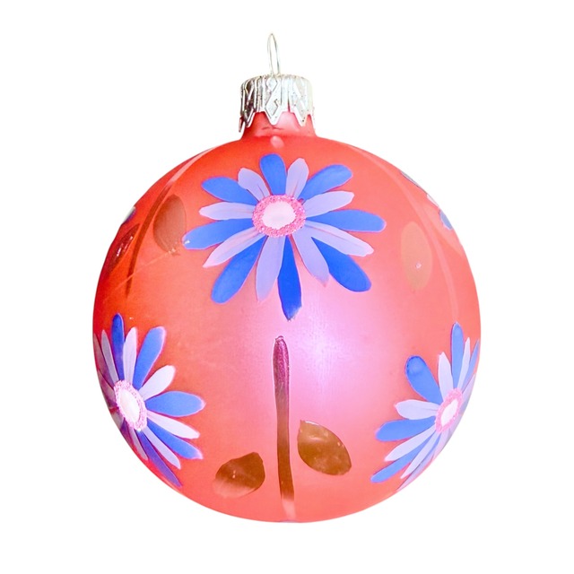 ポーランド製 8cmフラワーボール ピンク ガラスオーナメント クリスマスオーナメント