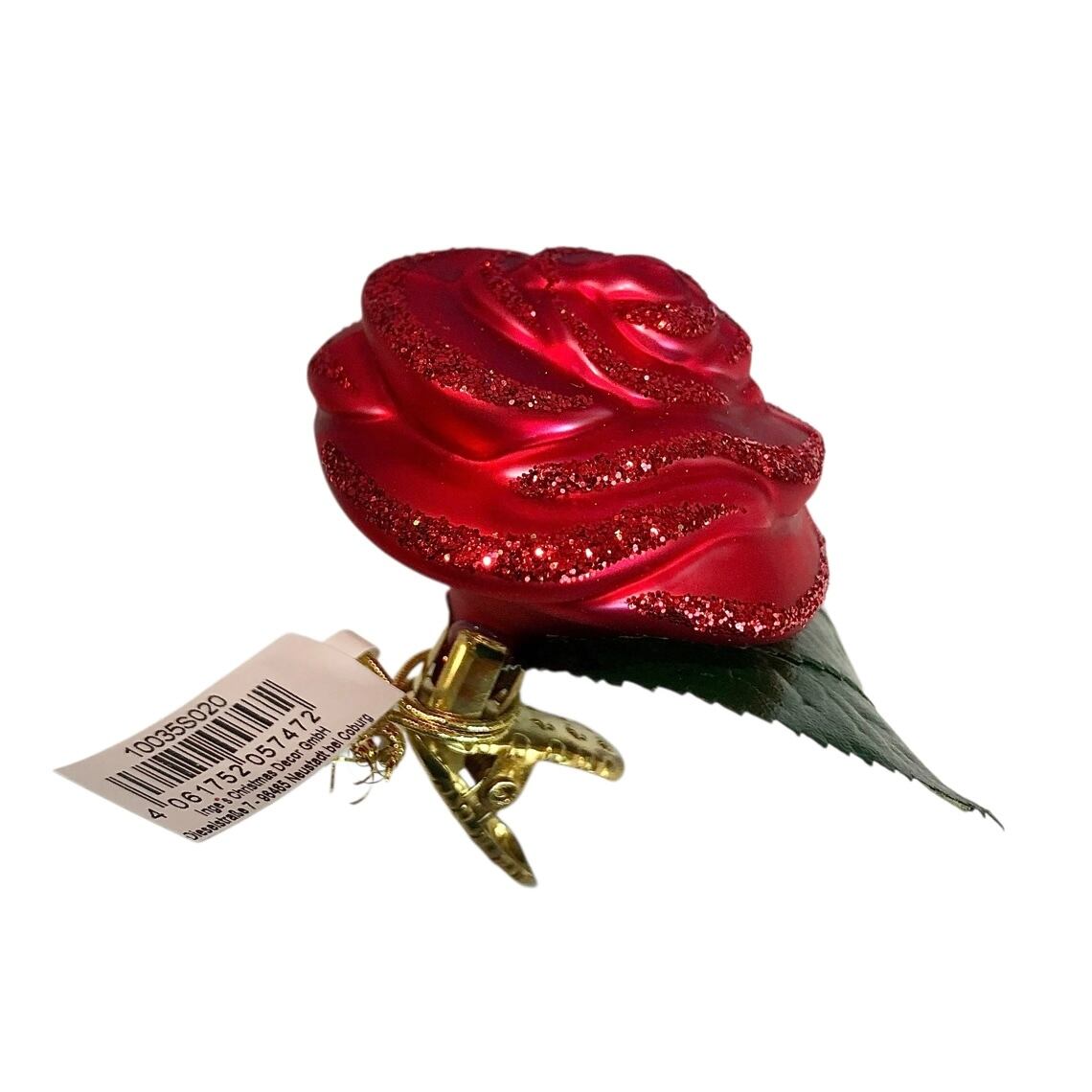INGE-GLAS ドイツ製 ローズクリップ ガラスオーナメント クリスマスオーナメント
