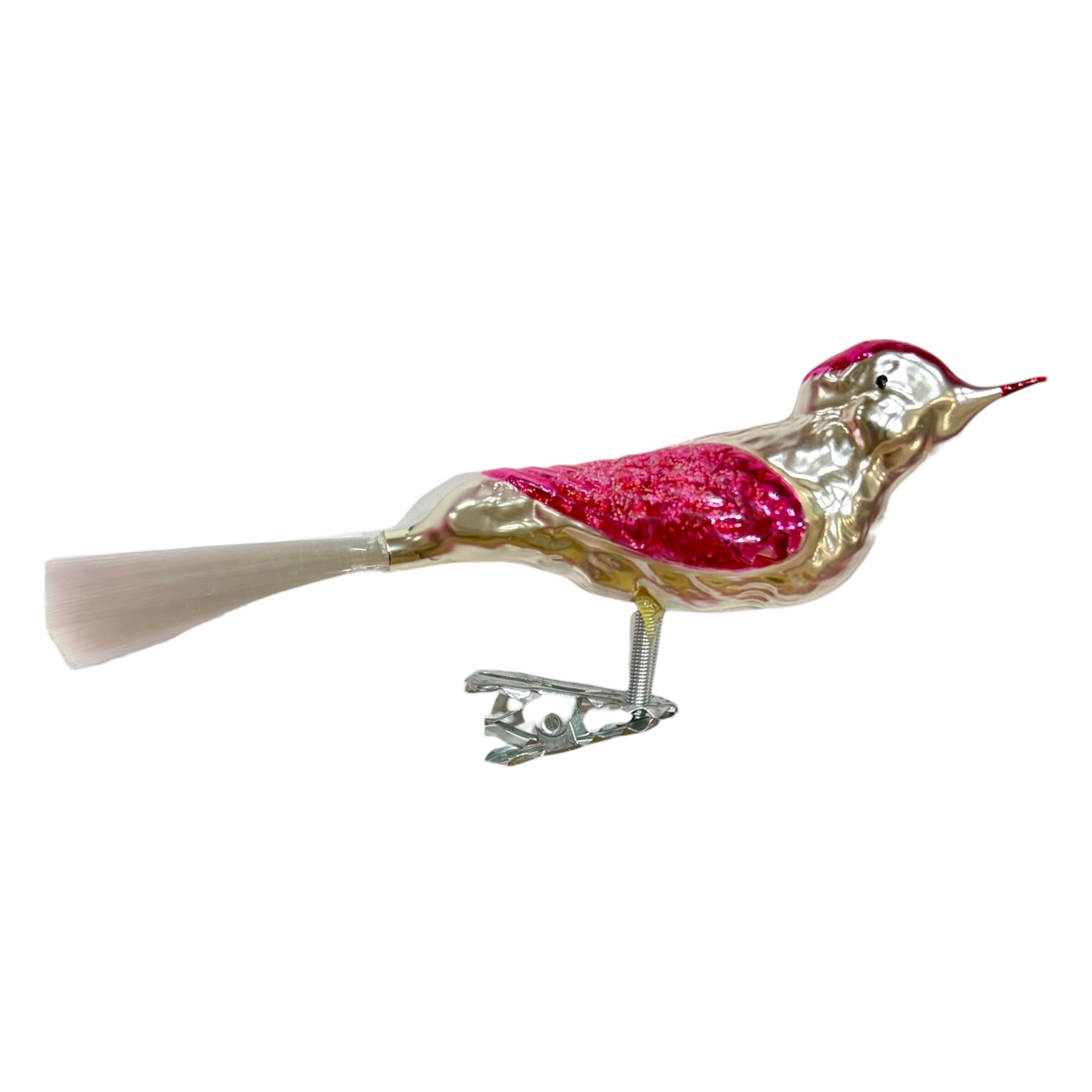 ドイツ製 ノスタルジックバード ピンク ガラスオーナメント クリスマスオーナメント