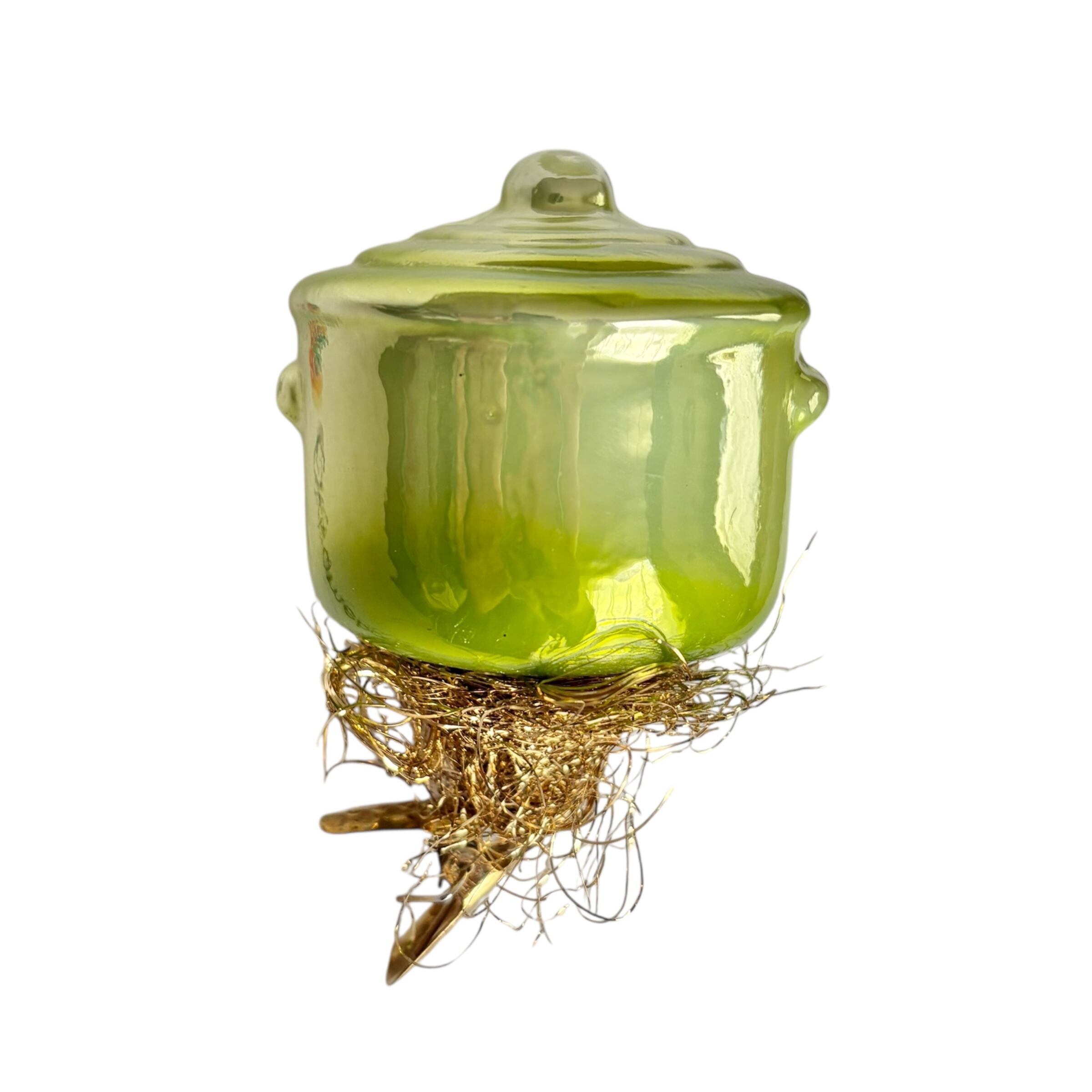 INGE-GLAS ドイツ製 ポット グリーン ガラスオーナメント クリスマスオーナメント