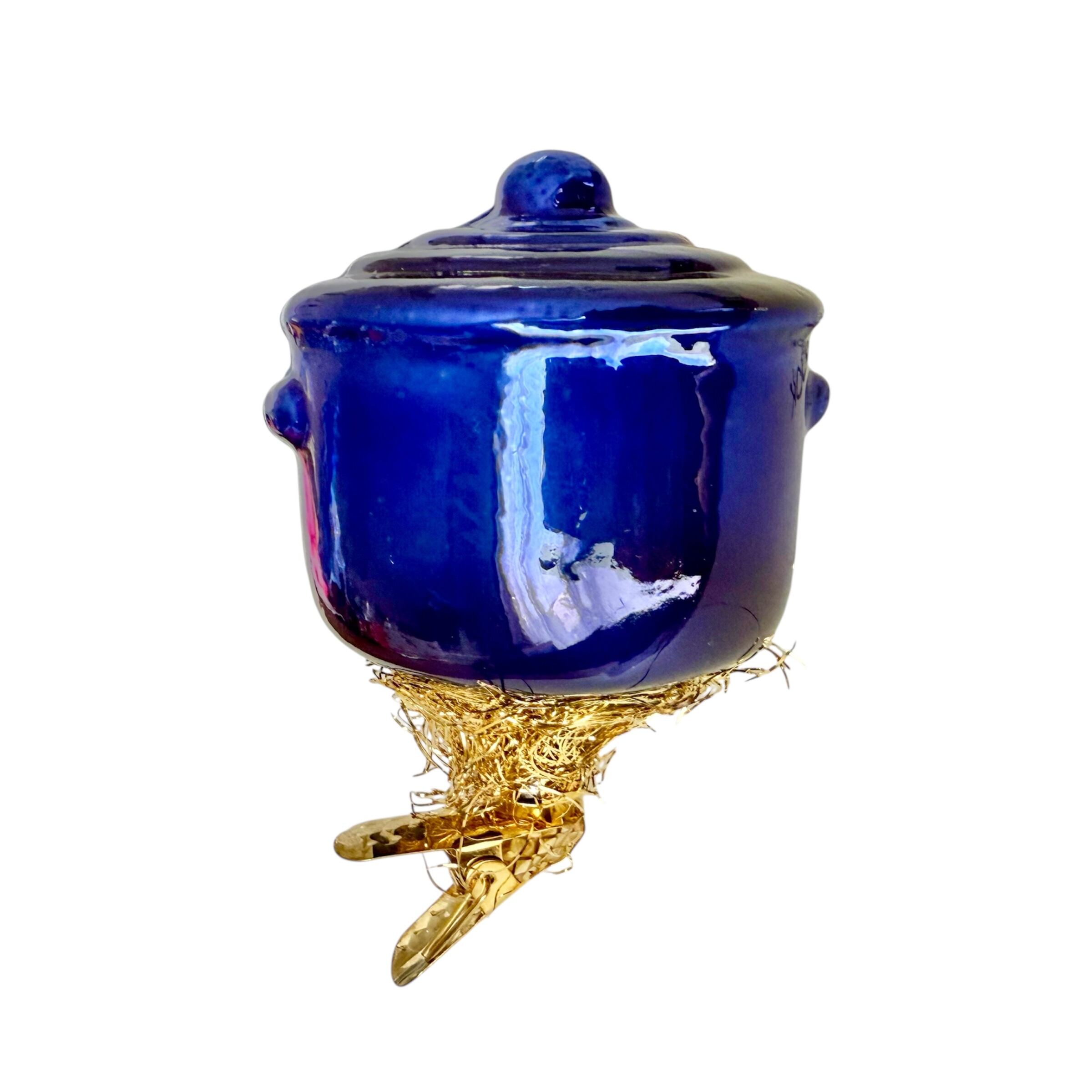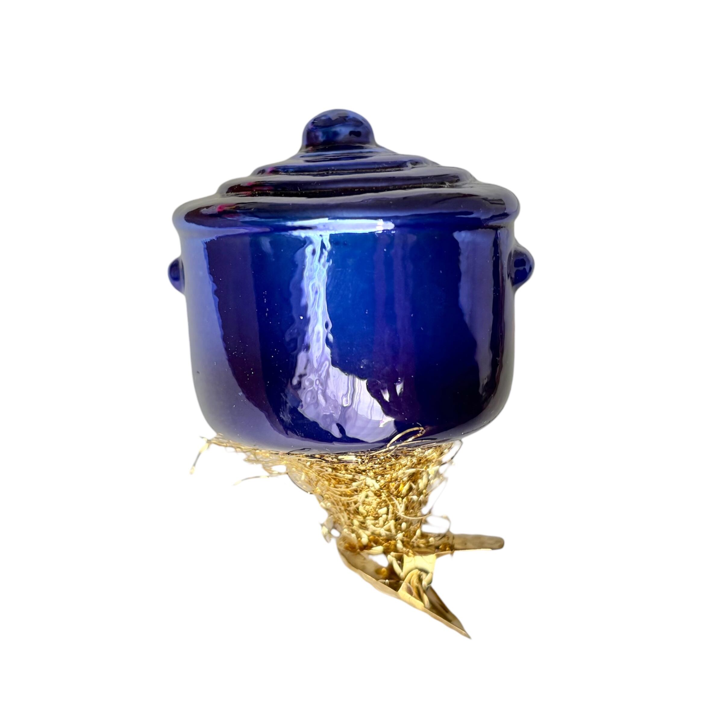 INGE-GLAS ドイツ製 ポット ブルー ガラスオーナメント クリスマスオーナメント