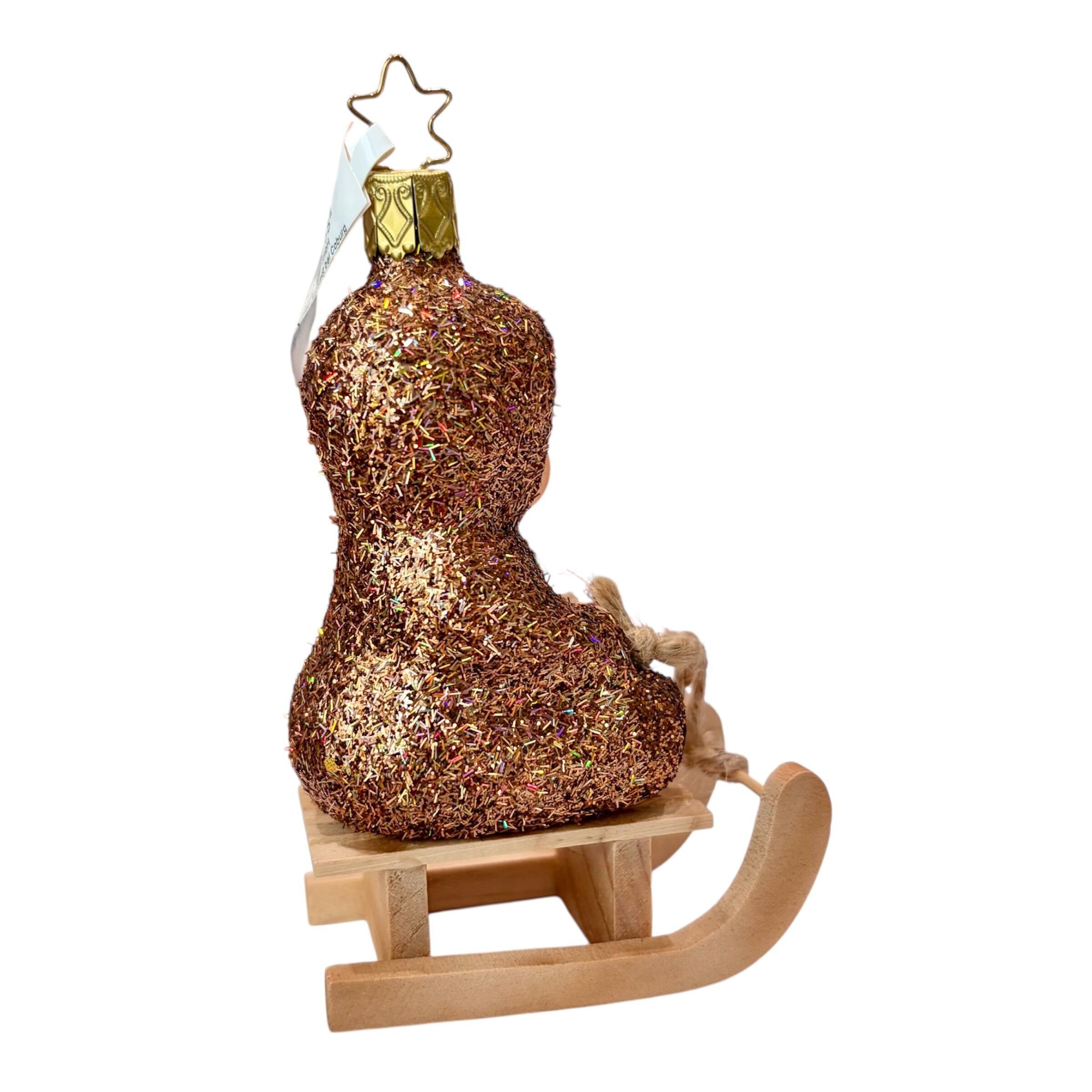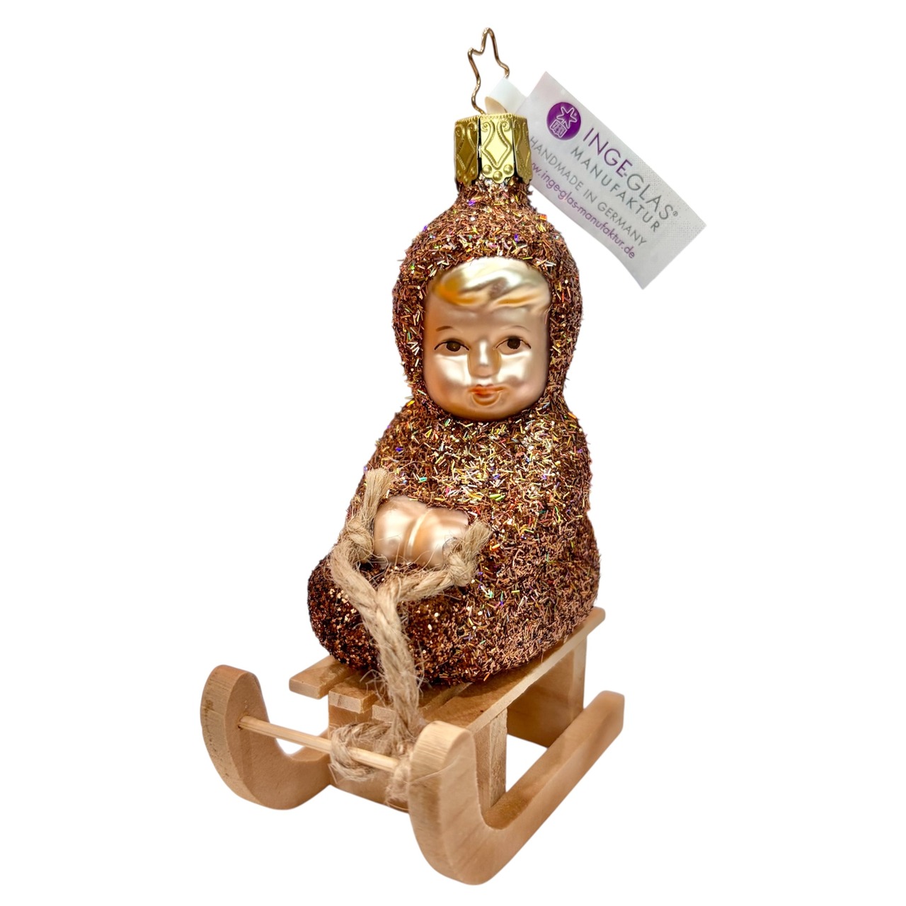 INGE-GLAS ドイツ製 ソリに乗る森のキラキラ少年 ガラスオーナメント クリスマスオーナメント