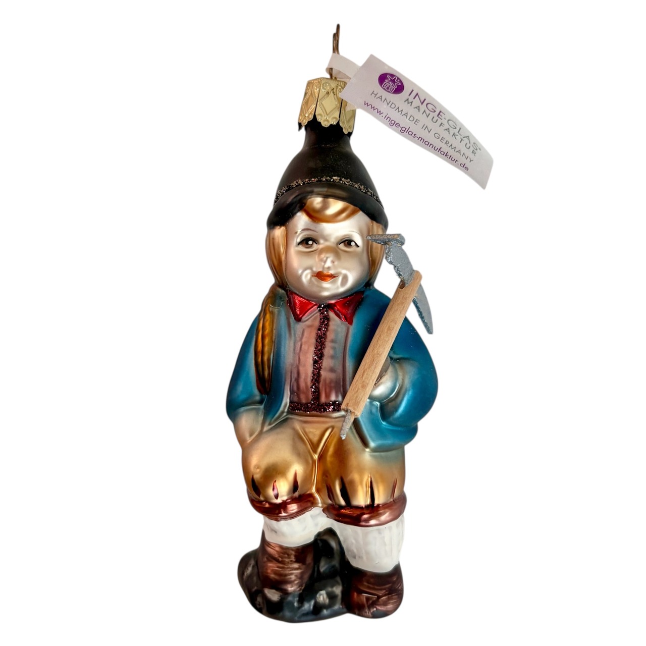 INGE-GLAS ドイツ製 頂上を目指す少年 ガラスオーナメント クリスマスオーナメント