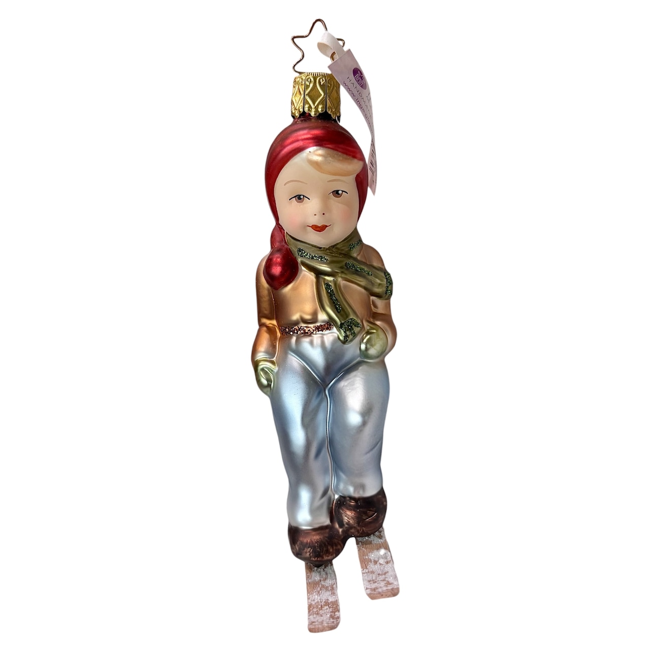 INGE-GLAS ドイツ製 スキーで遊ぶ男の子 ガラスオーナメント クリスマスオーナメント