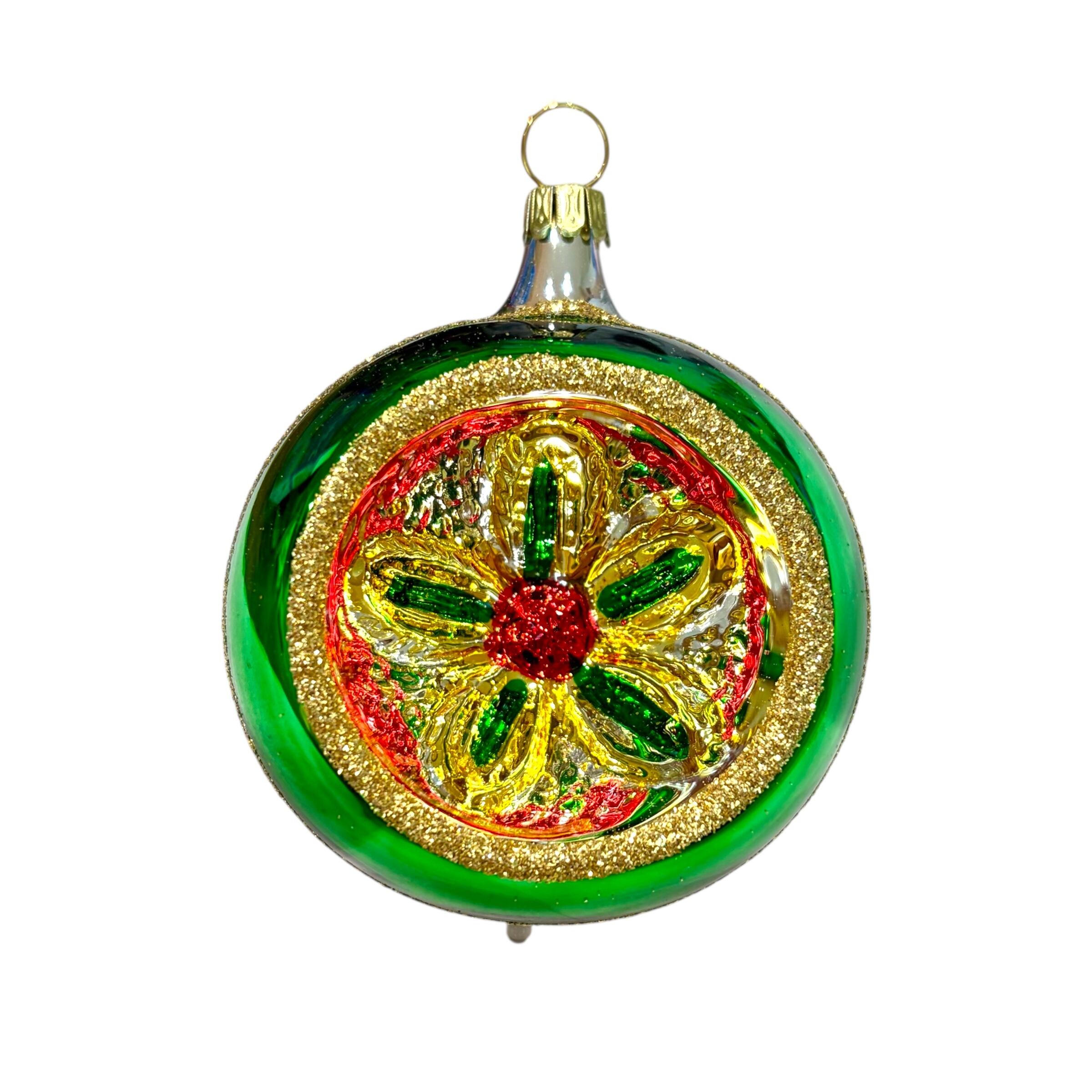 ドイツ製 リフレクターオーナメント 7cm グリーン A ガラスオーナメント クリスマスオーナメント