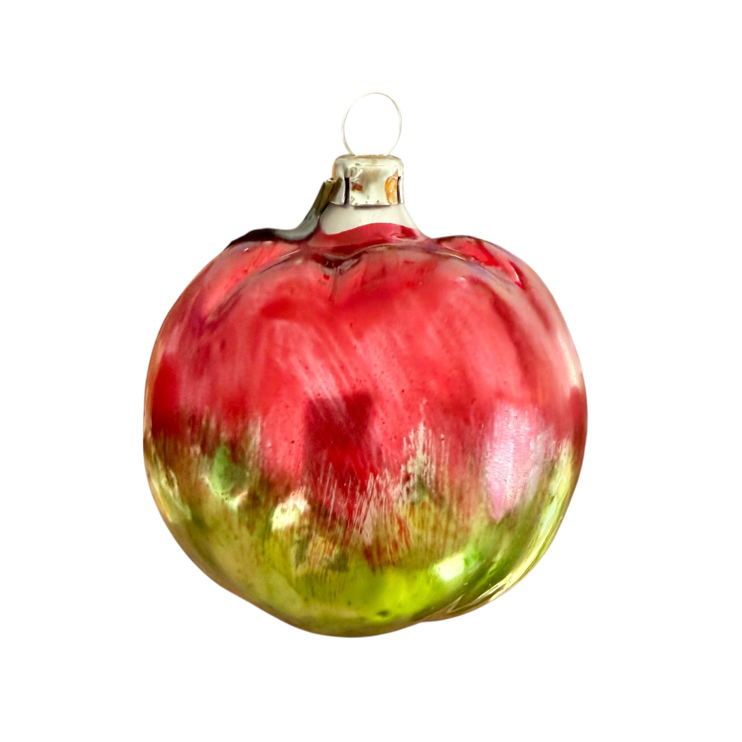 ドイツ製 葉っぱ付きリンゴ ガラスオーナメント クリスマスオーナメント