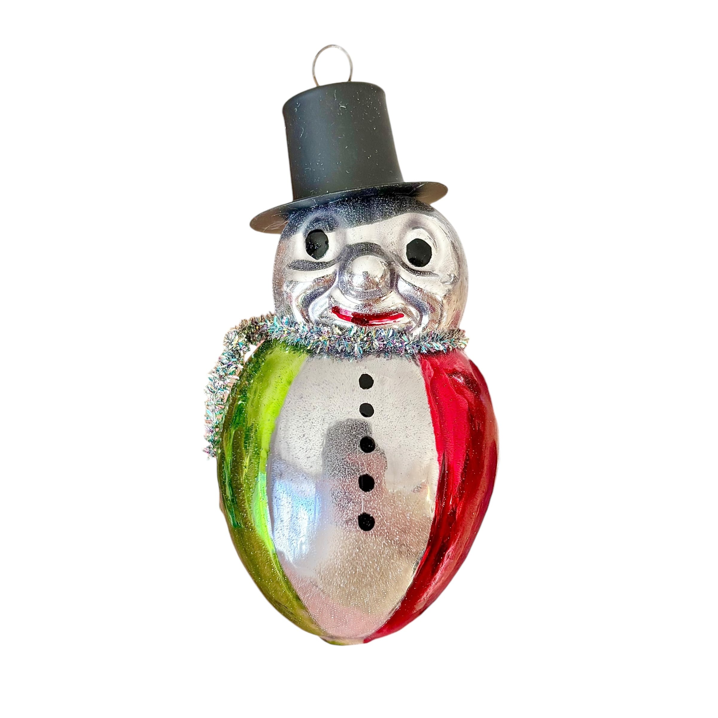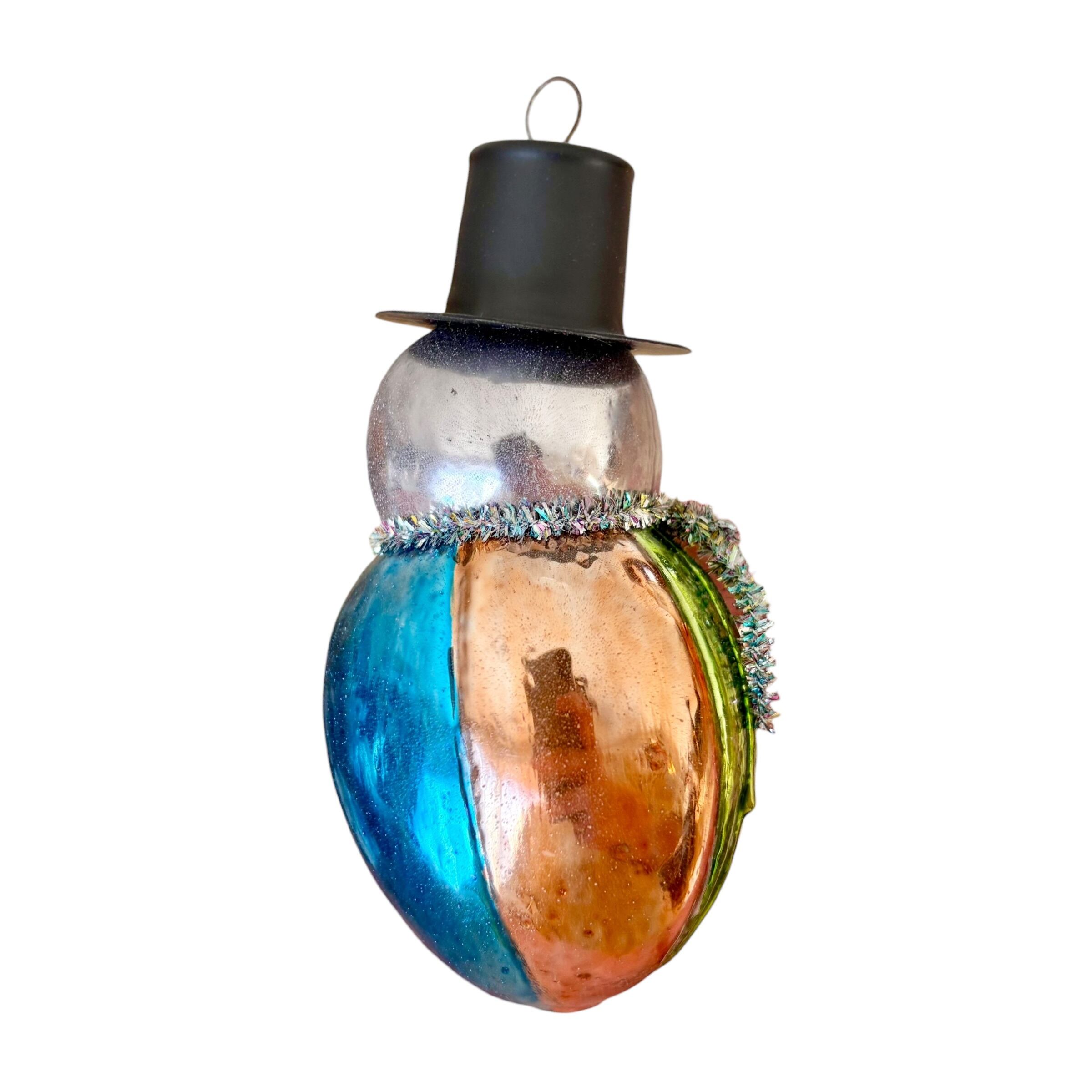 ドイツ製 ブラックハットスノーマン ガラスオーナメント クリスマスオーナメント