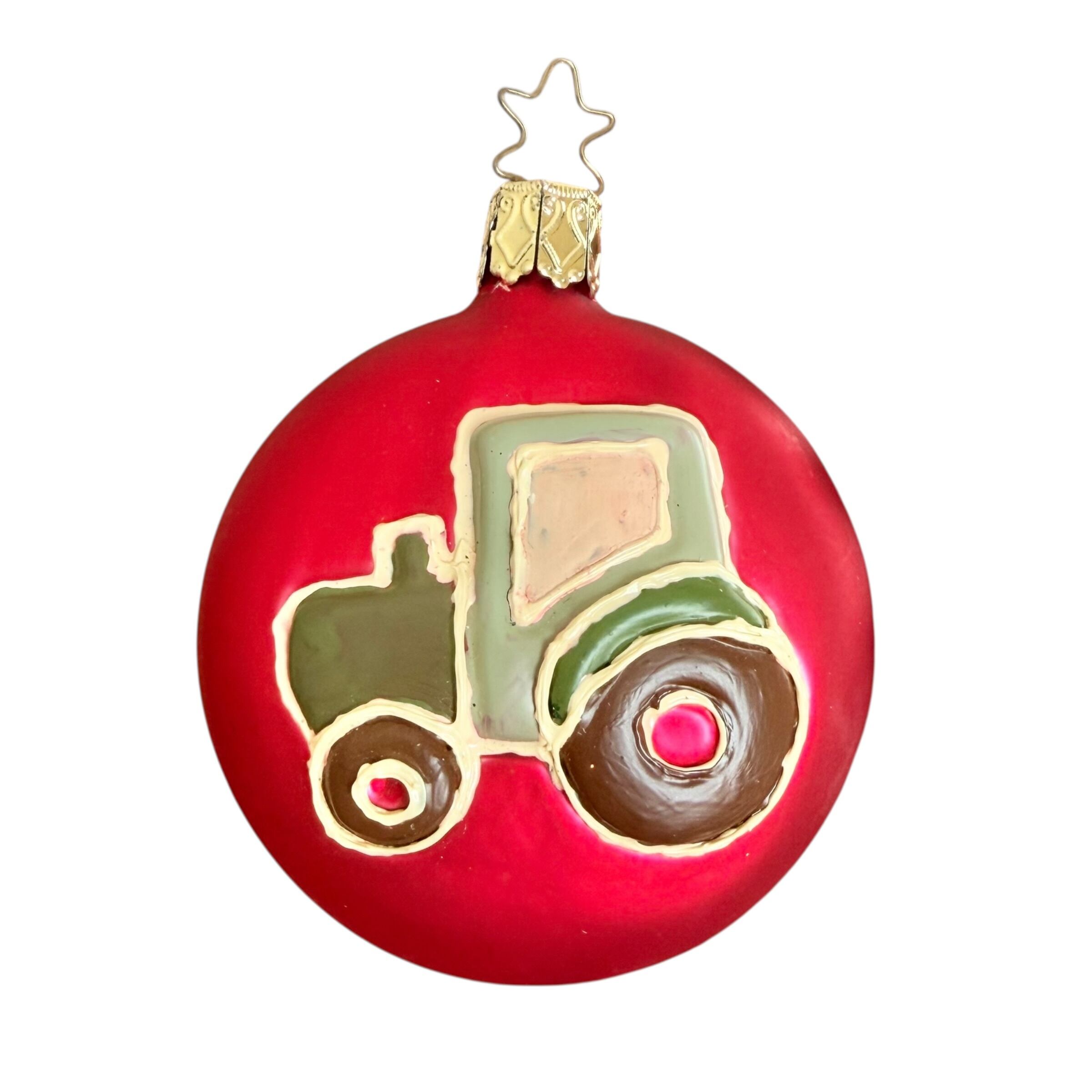 INGE-GLAS Vintage ドイツ製 牧場のトラクター ガラスオーナメント クリスマスオーナメント