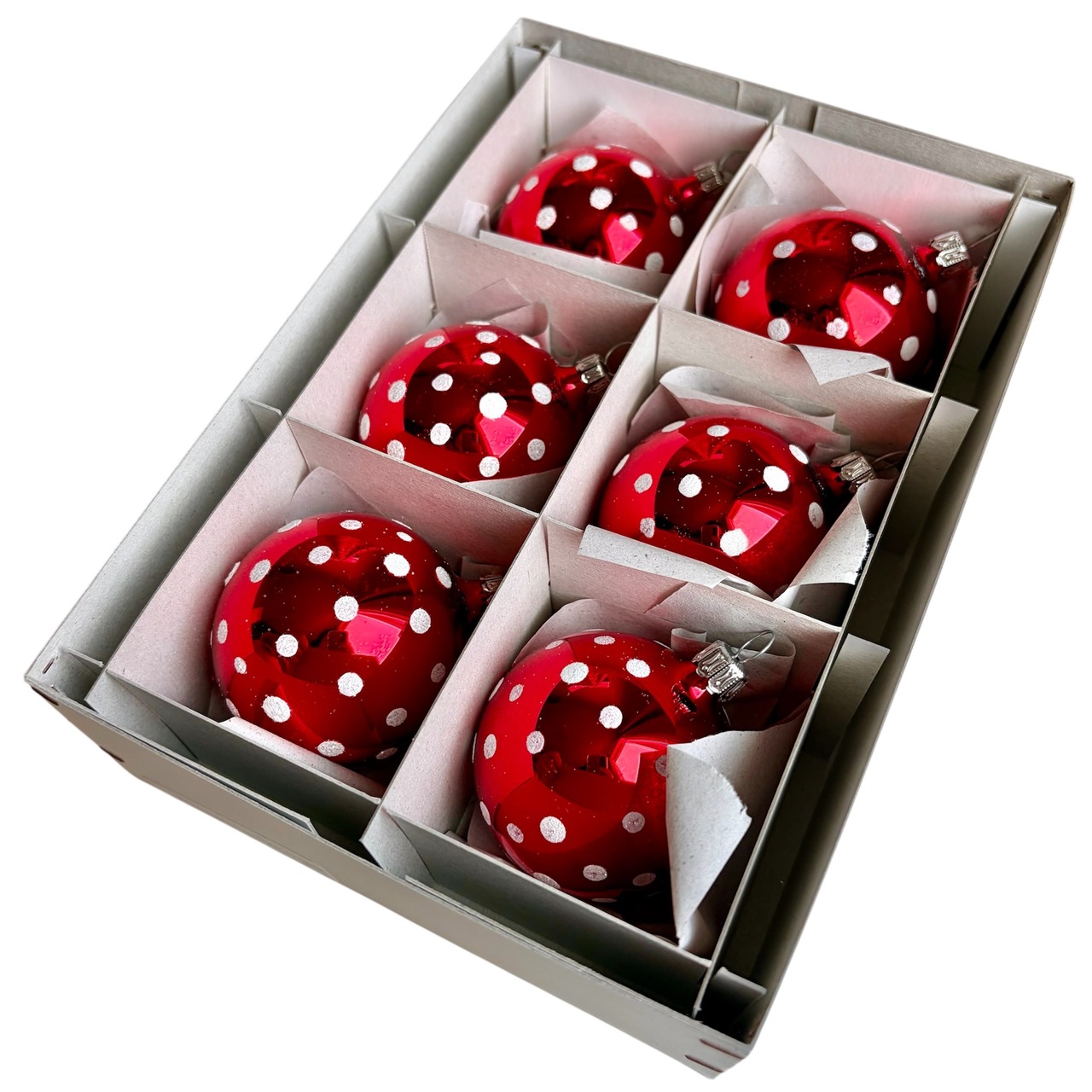 ドイツ製 Old Dots 6cmボール 6個セット レッド ガラスオーナメント クリスマスオーナメント