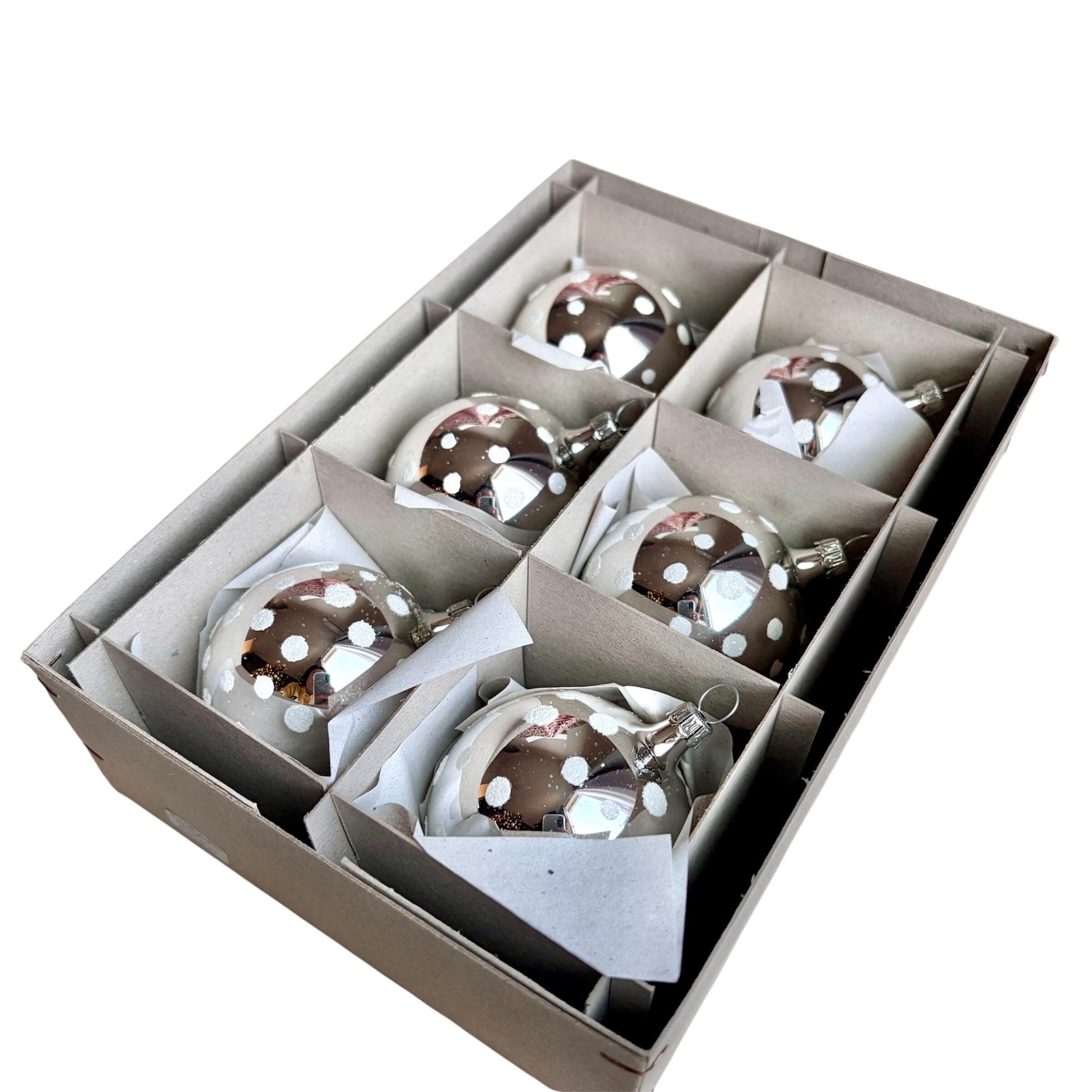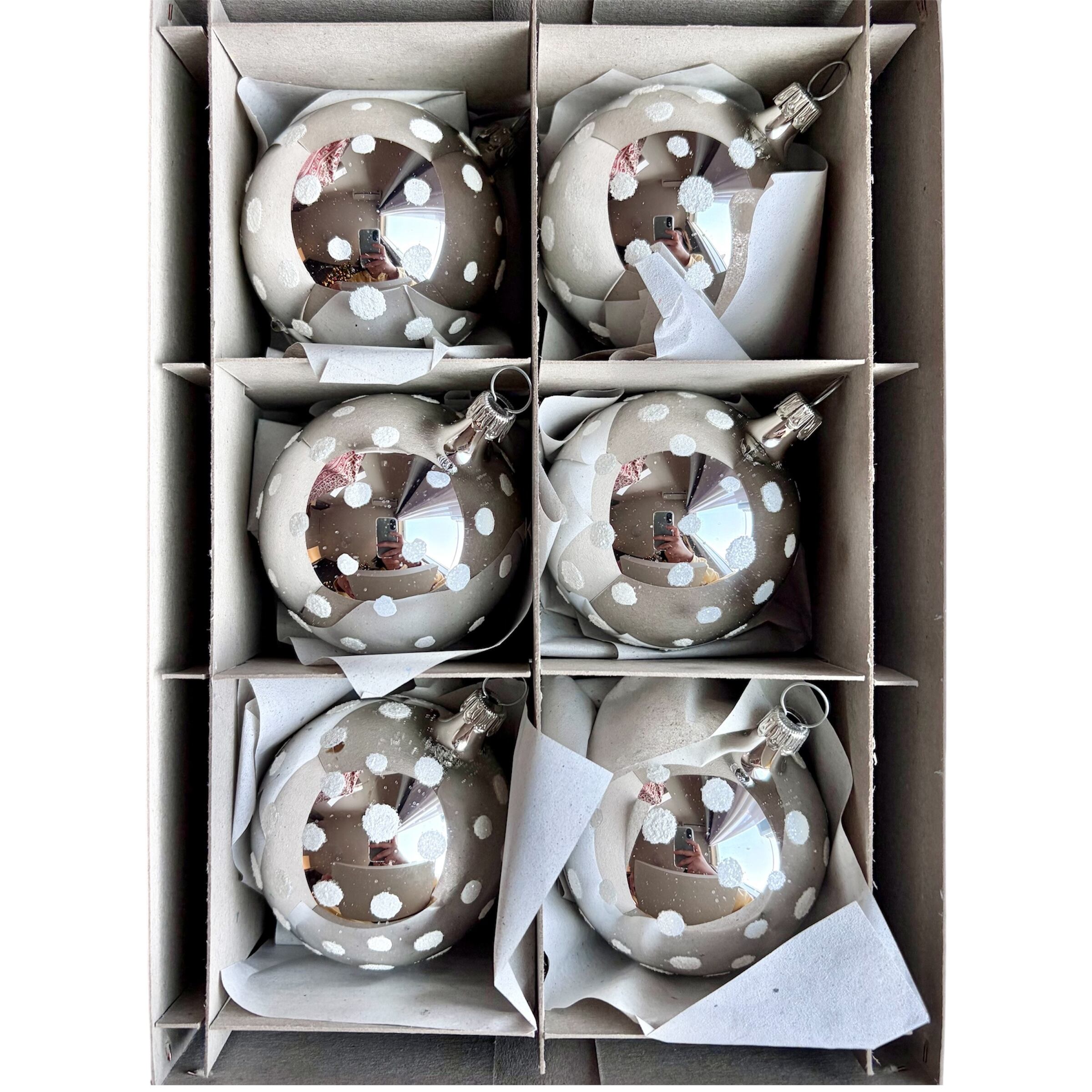 ドイツ製 Old Dots 6cmボール 6個セット シルバー ガラスオーナメント クリスマスオーナメント