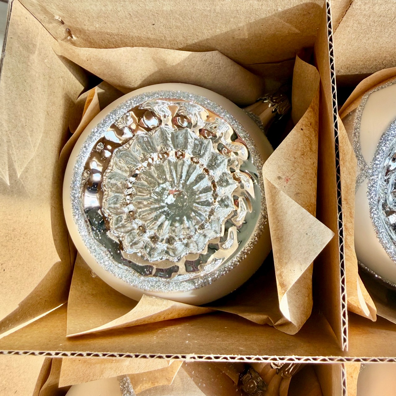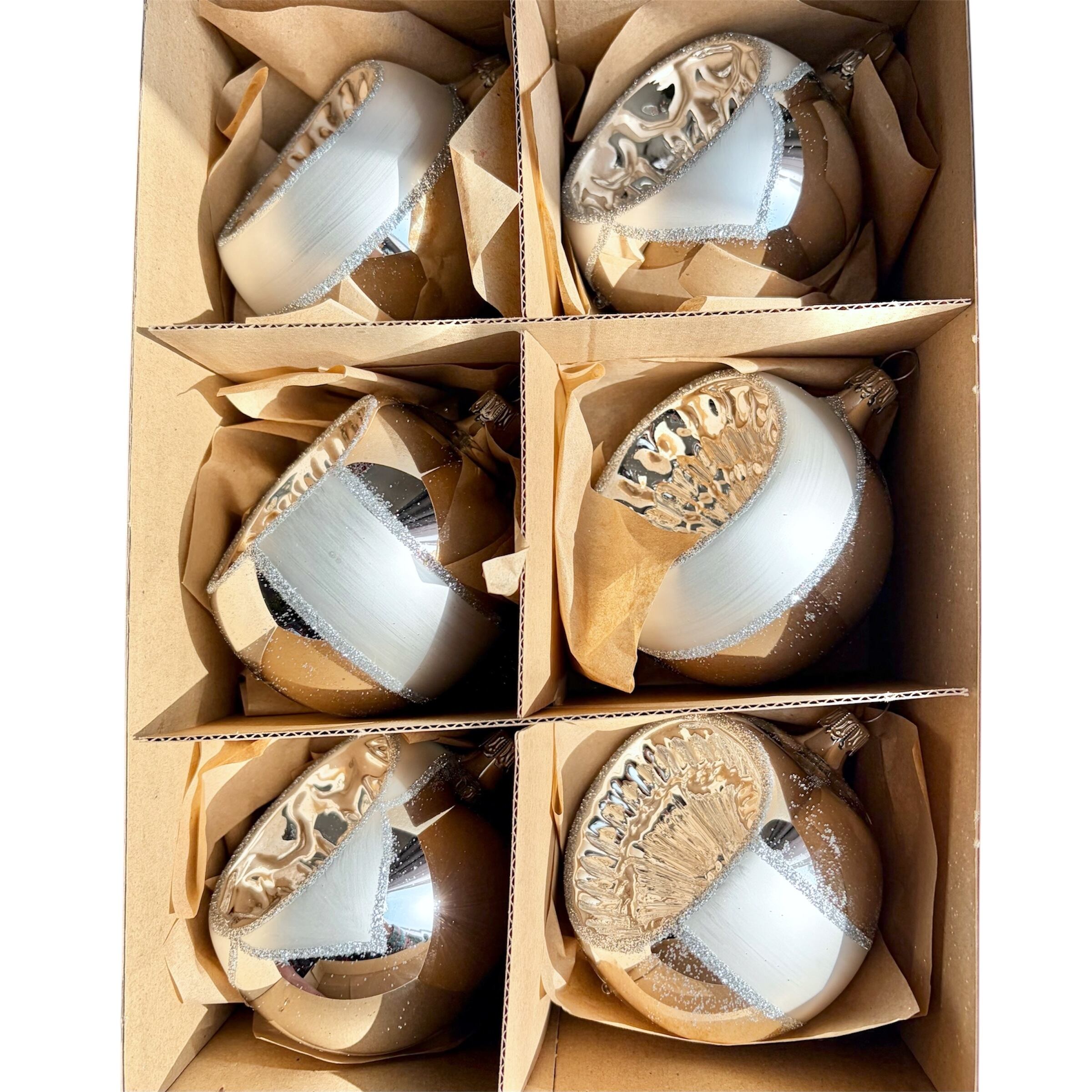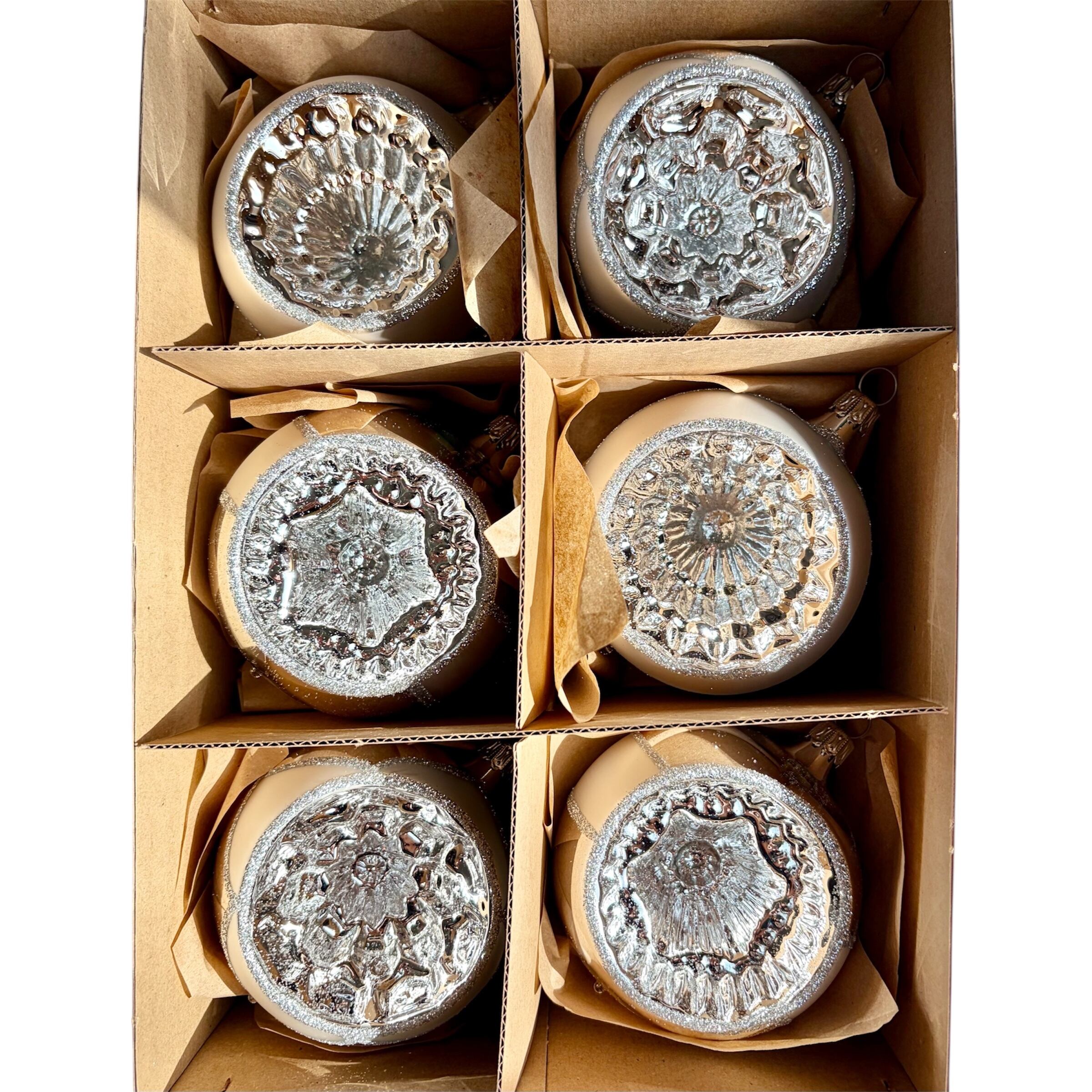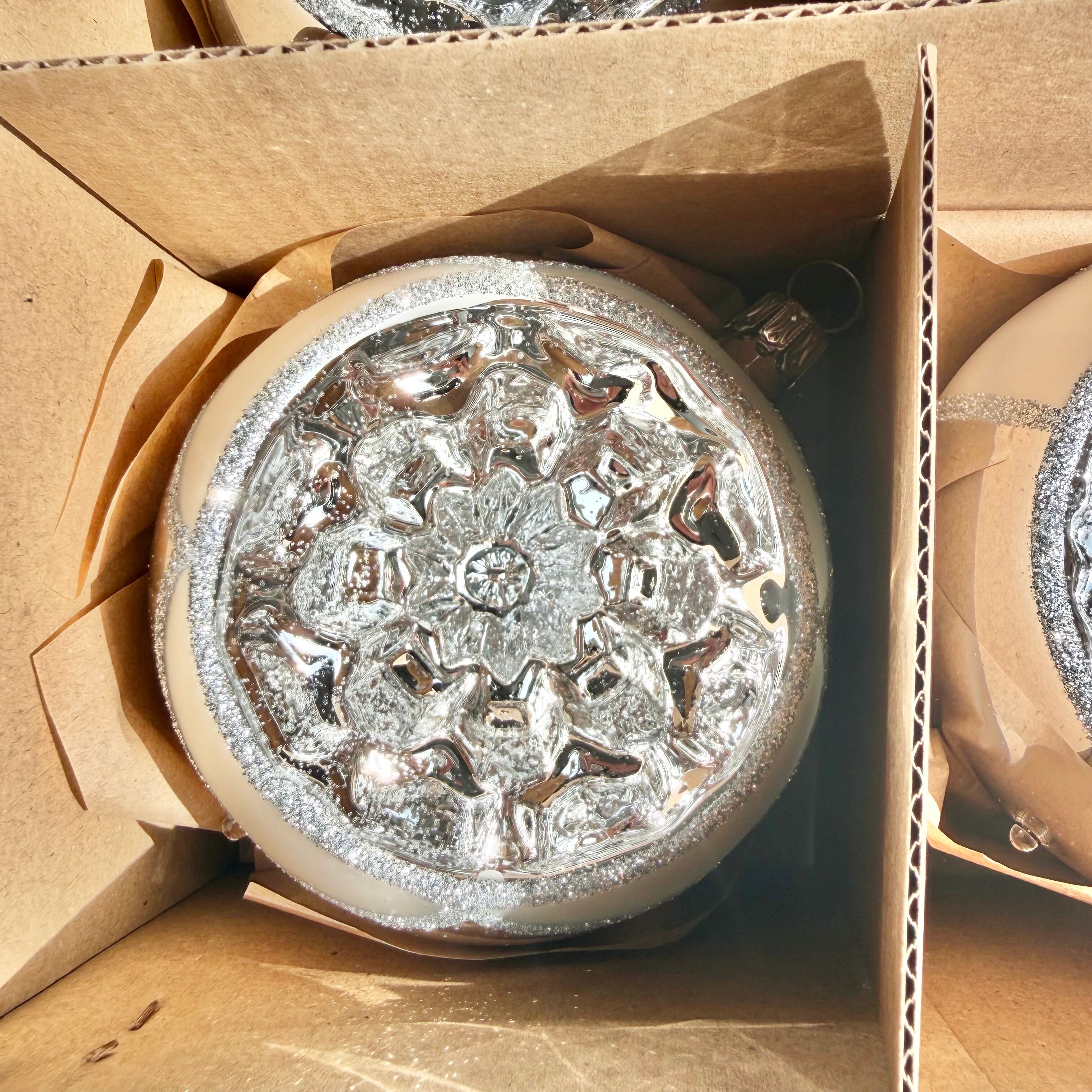 ドイツ製 8cmシルバーオールドリフレクターボール 6個セット ガラスオーナメント クリスマスオーナメント