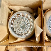 口拭きガラス、ハンドペイントで作られているため、ペイント飛びや小さな剥げ、ラメの落ち、スレ傷、汚れのようなものなど見られることがあります。