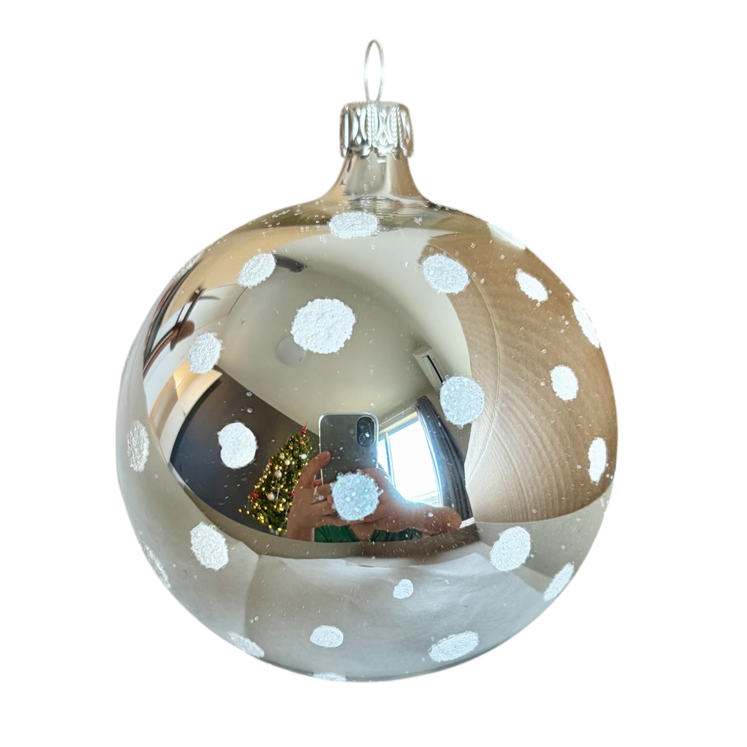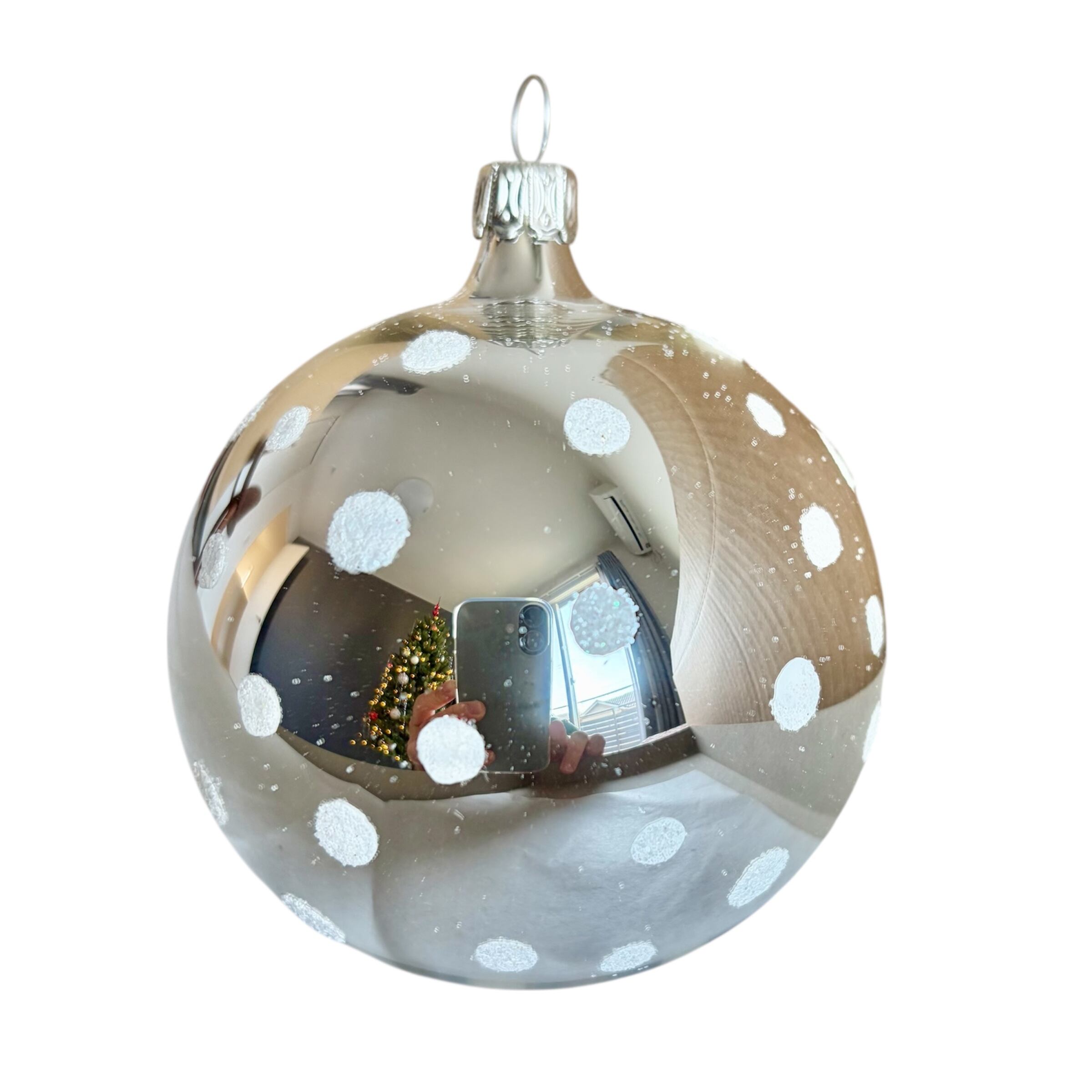 ドイツ製 Old Dots 8cmボール シルバー ガラスオーナメント クリスマスオーナメント