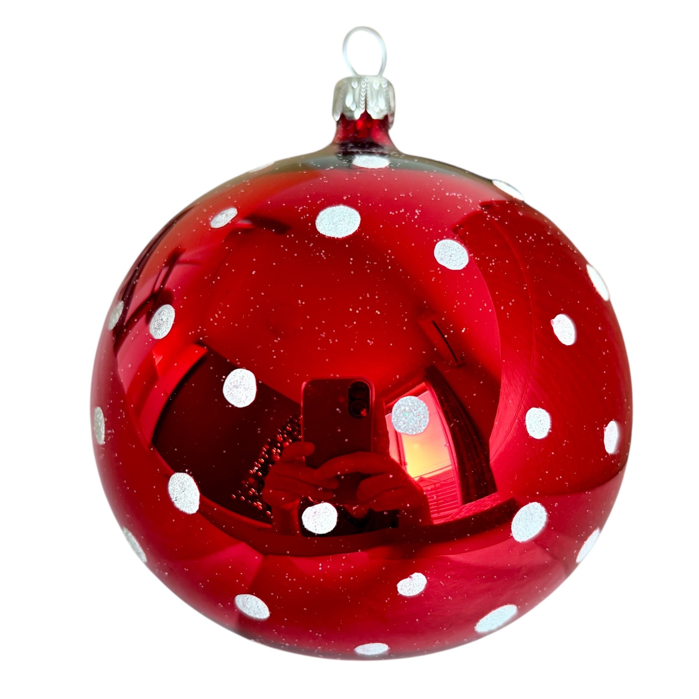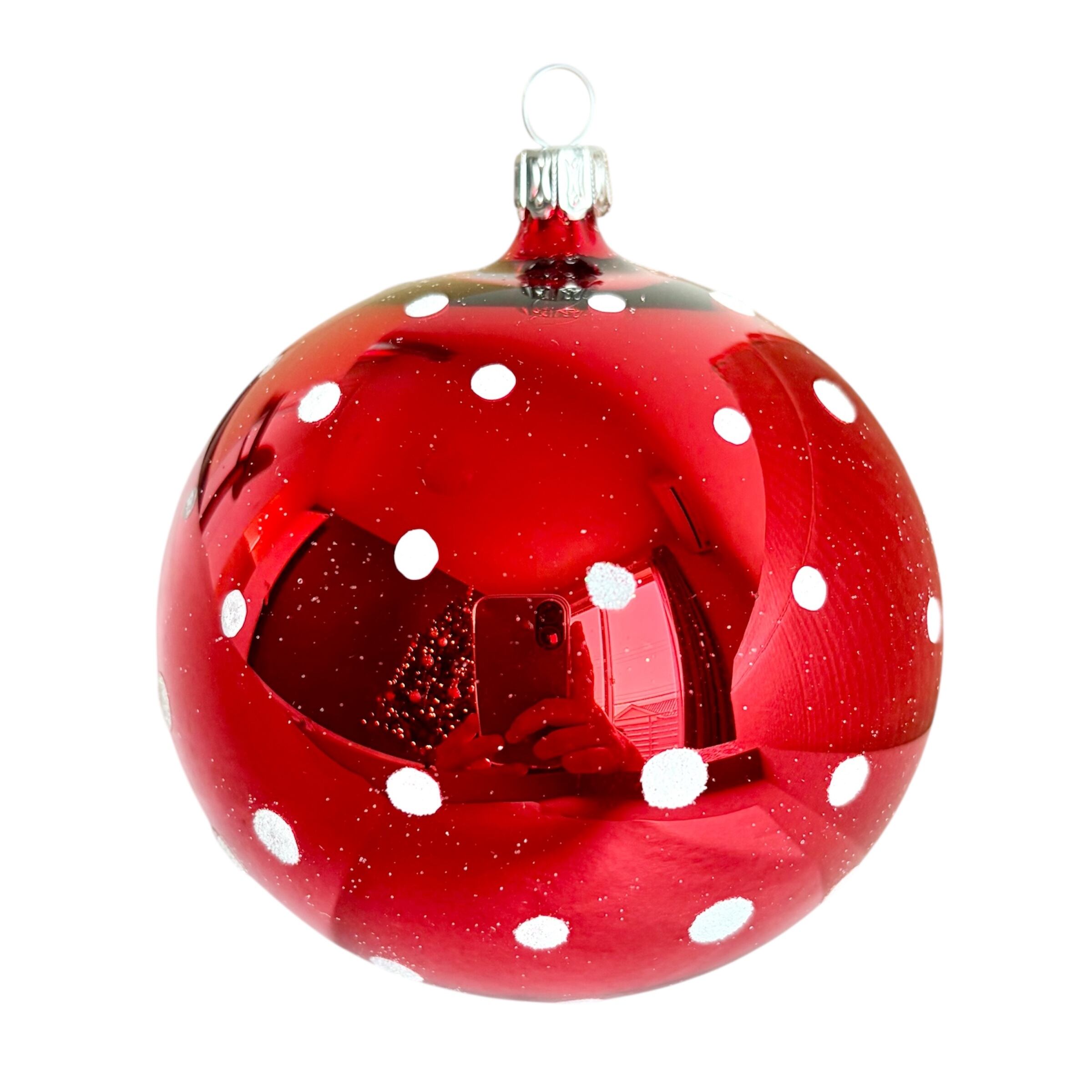 1956年からドイツで飾られているこのデザインは、様々なサイズの白いグリッタードットで装飾されています。