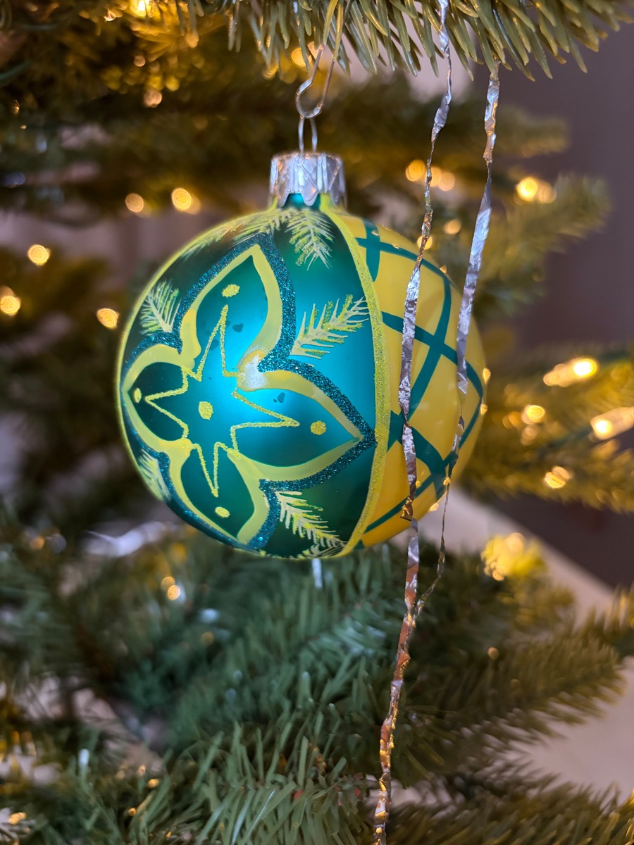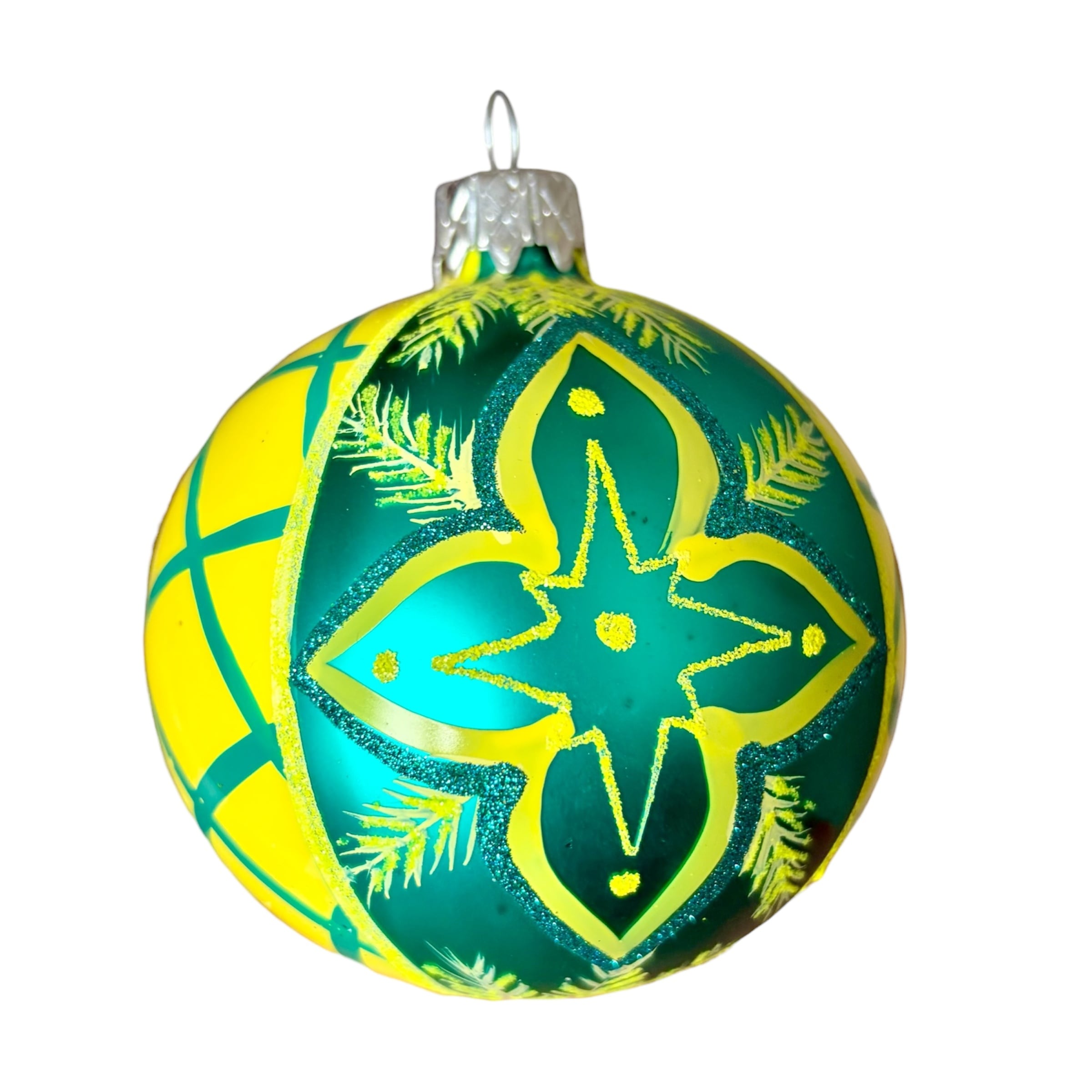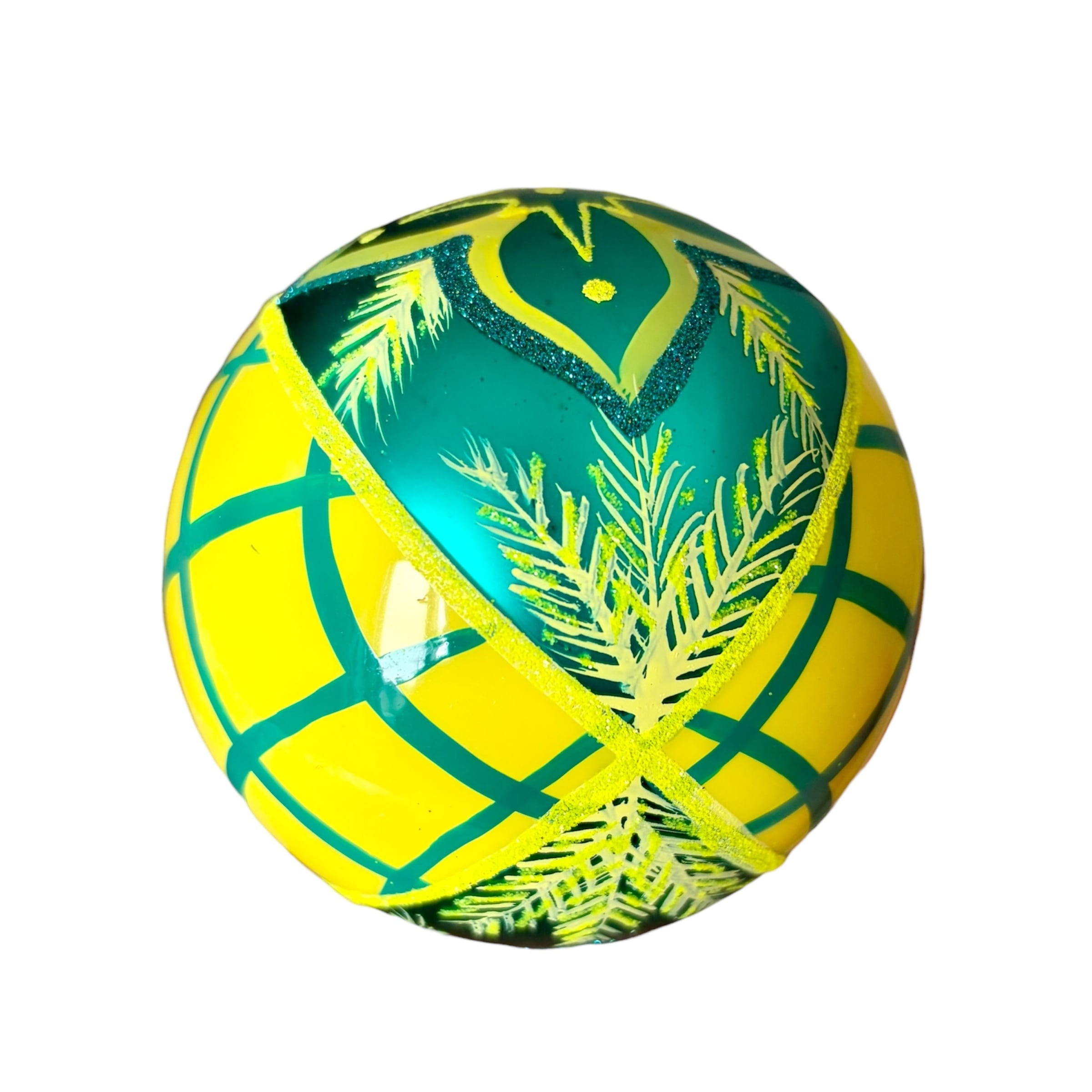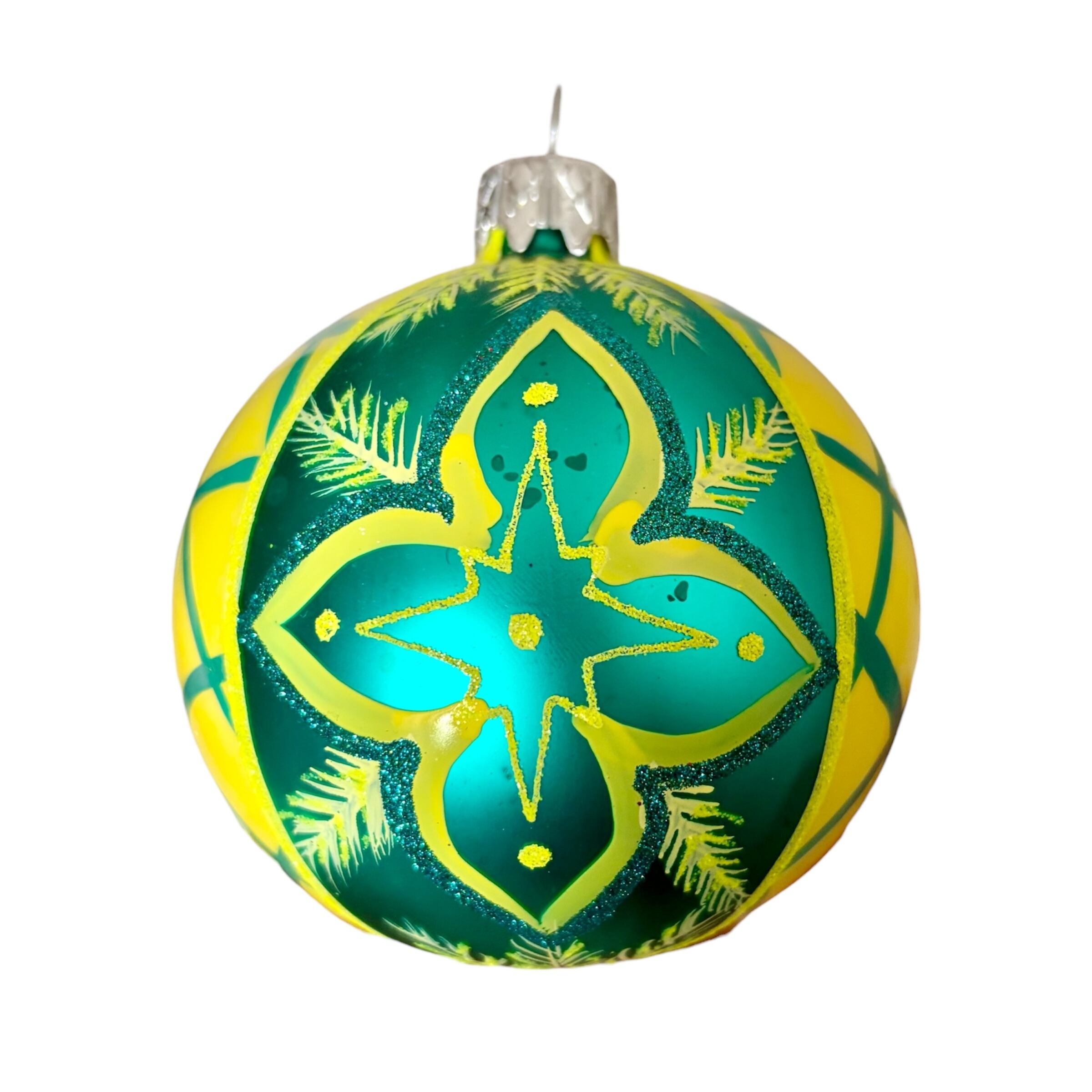 ポーランド製 8cmレトロボール イエロー×グリーン ガラスオーナメント クリスマスオーナメント