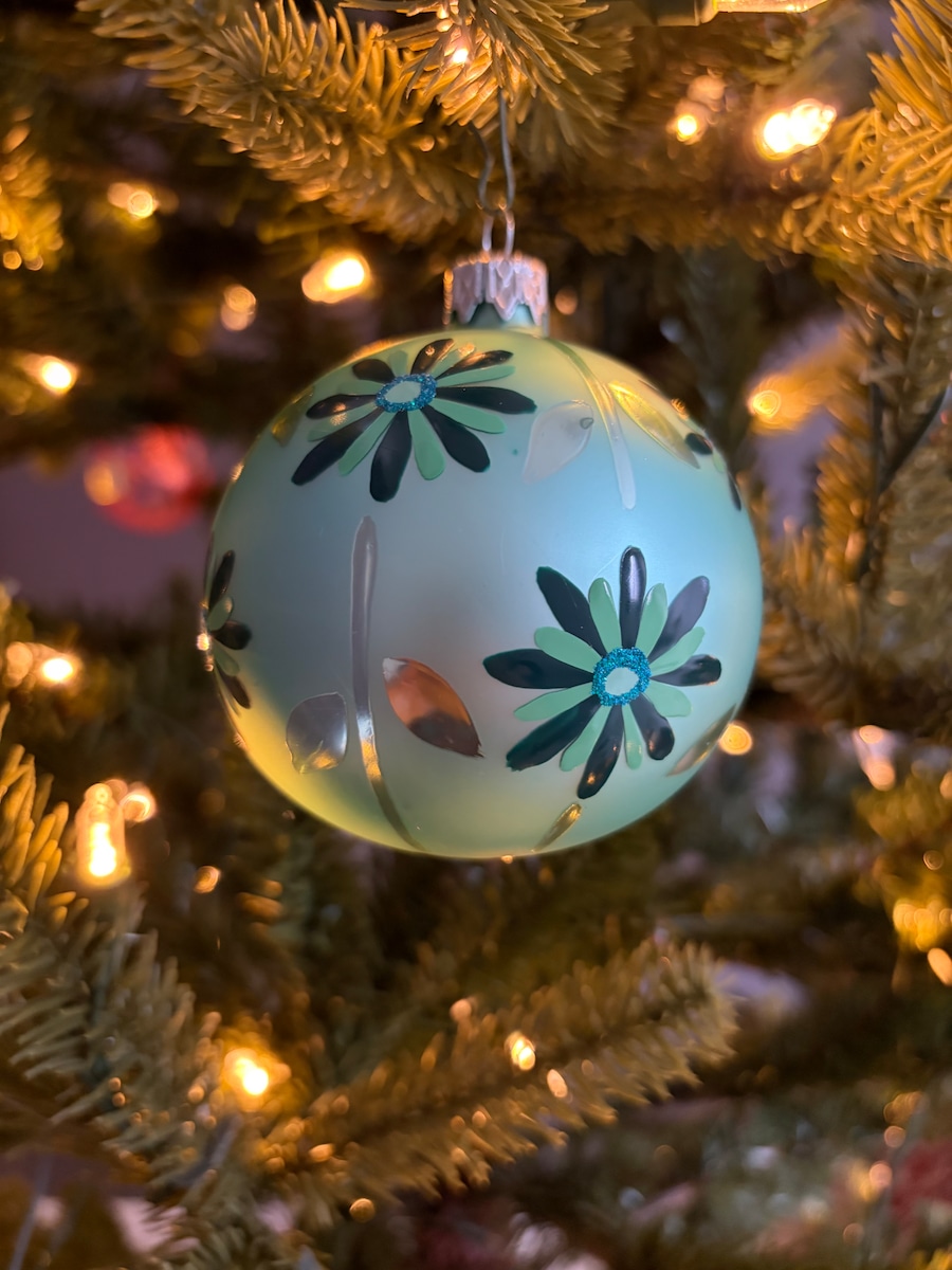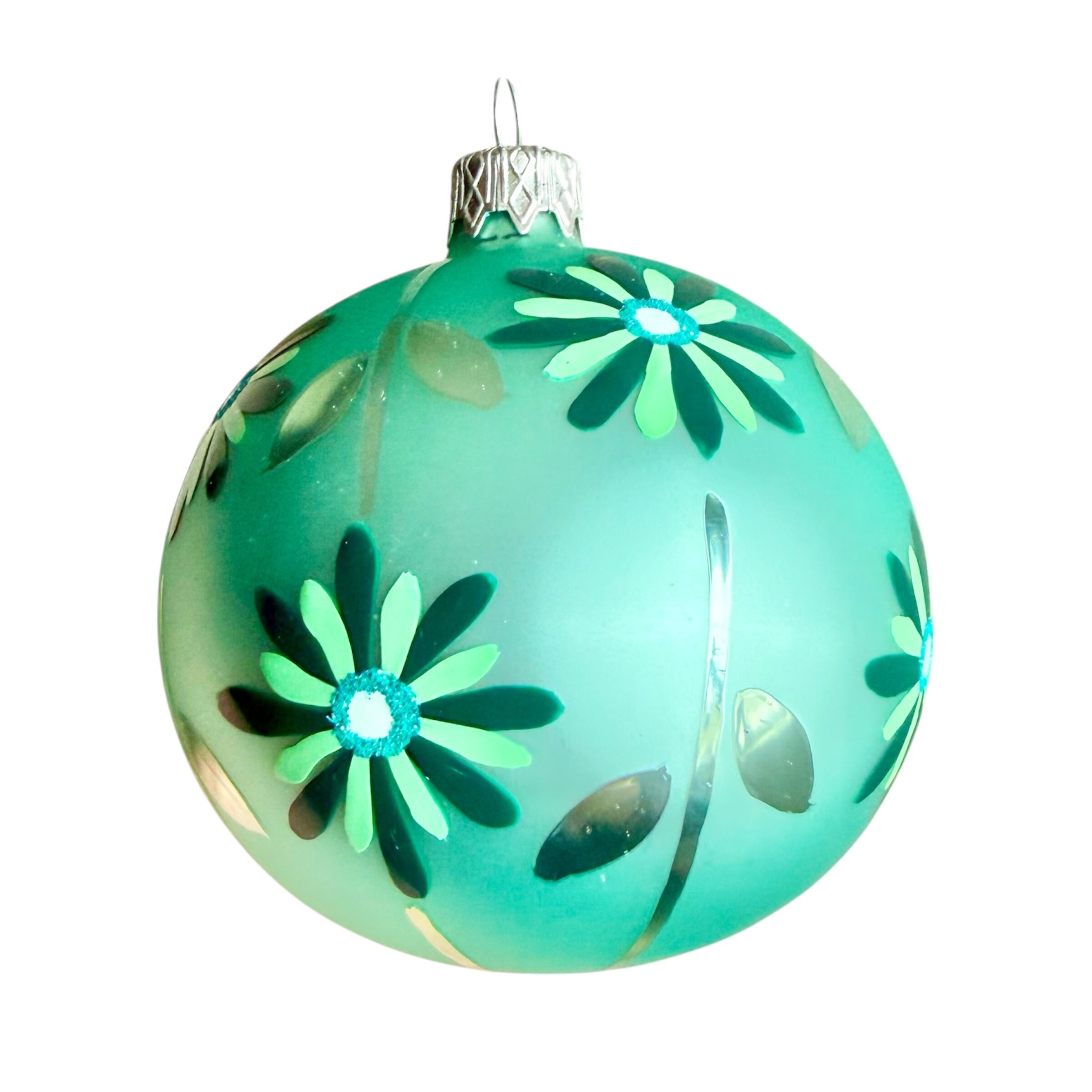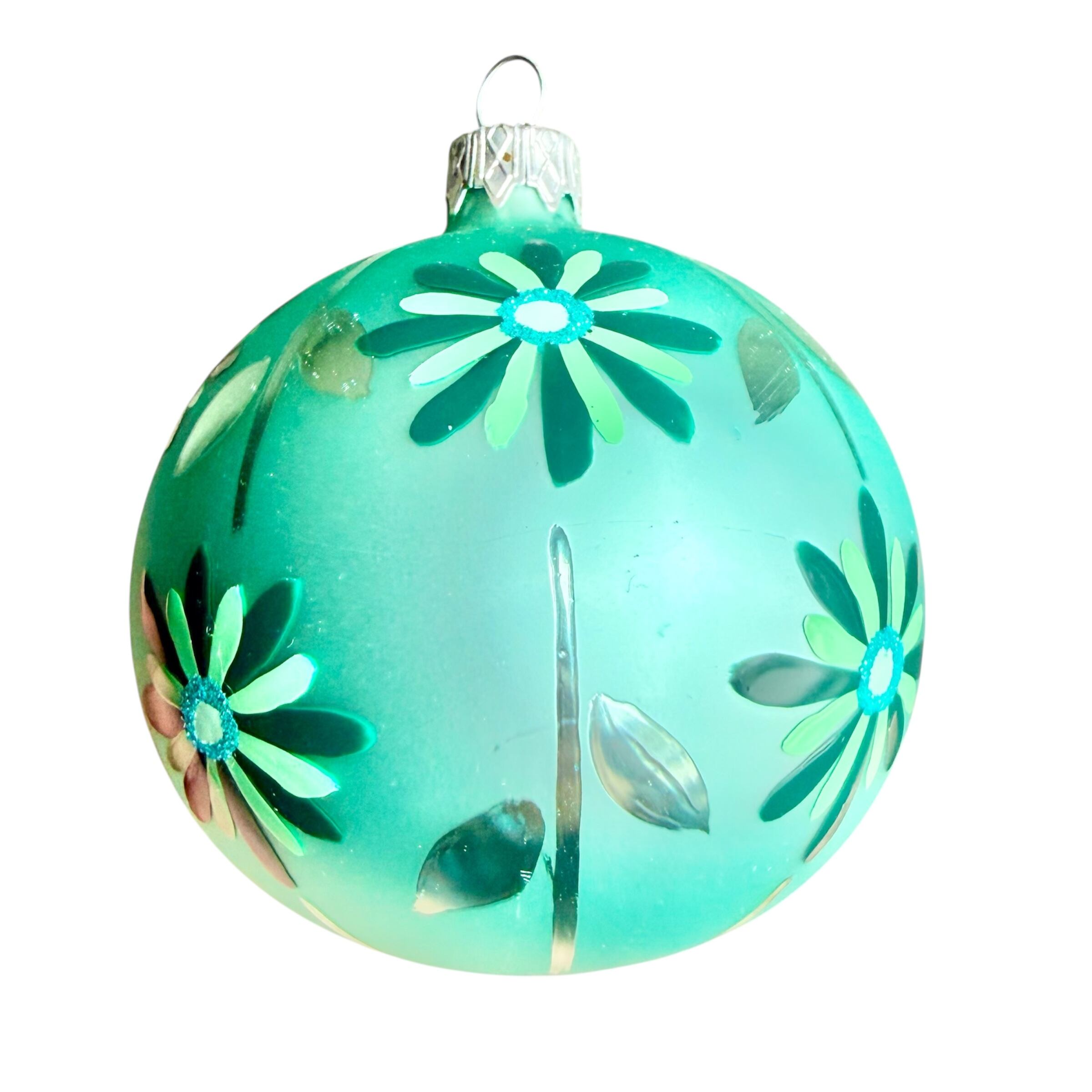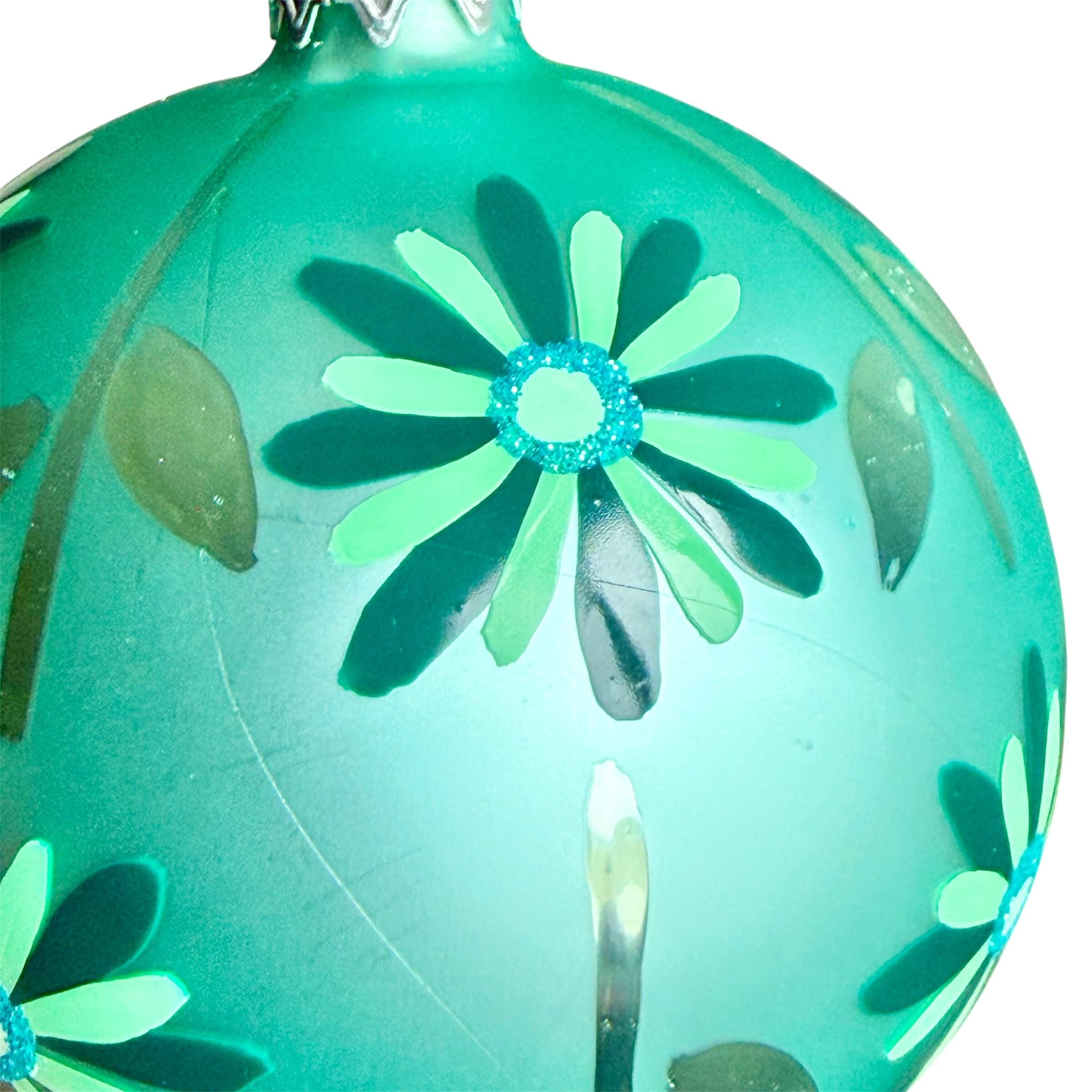 ポーランド製 8cmフラワーボール グリーン ガラスオーナメント クリスマスオーナメント