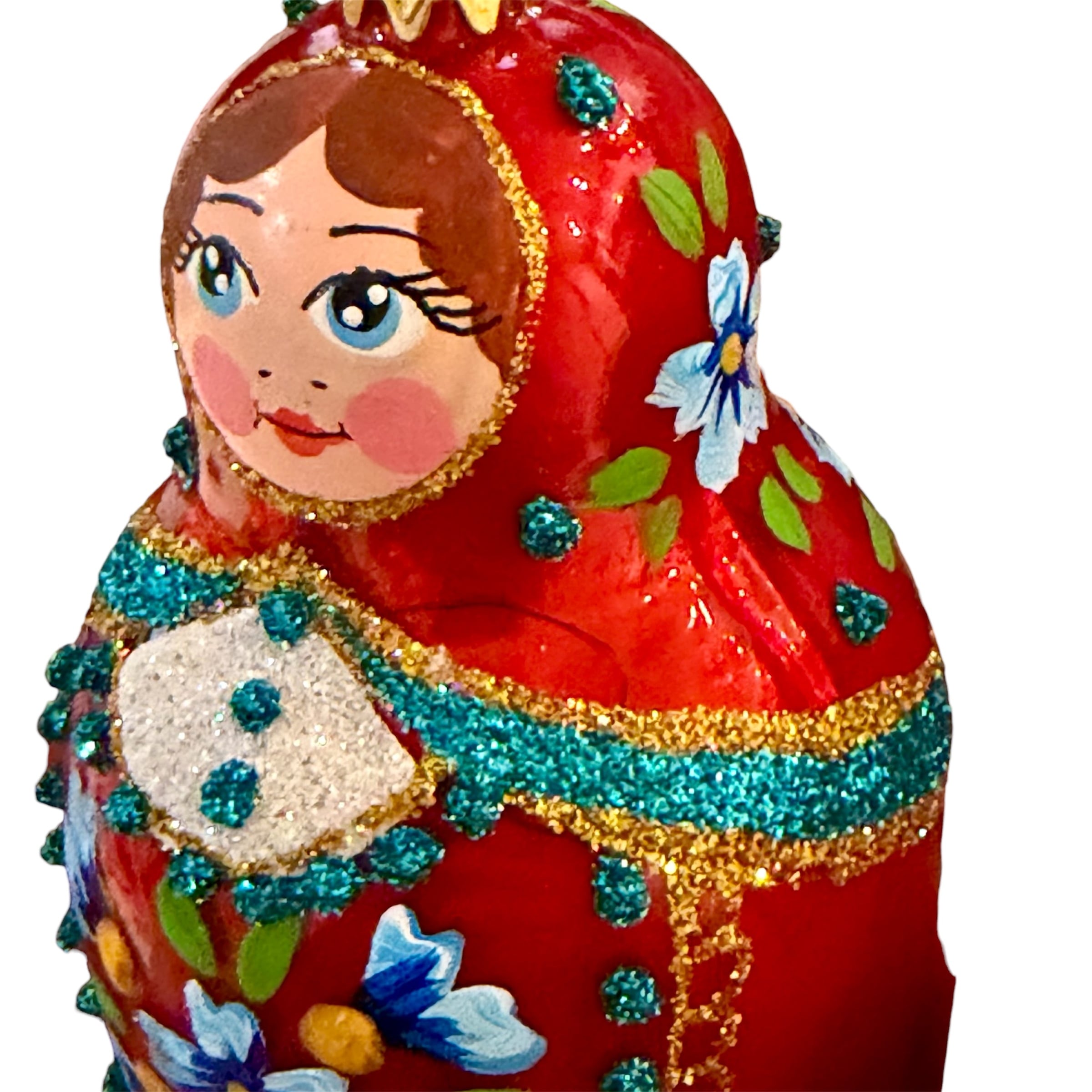 マトリョーシカのオーナメントには、ラメを装飾する際の下描き線(黒い線)が残っていたりはみ出ている場合があります。割れではありませんためご了承ください。