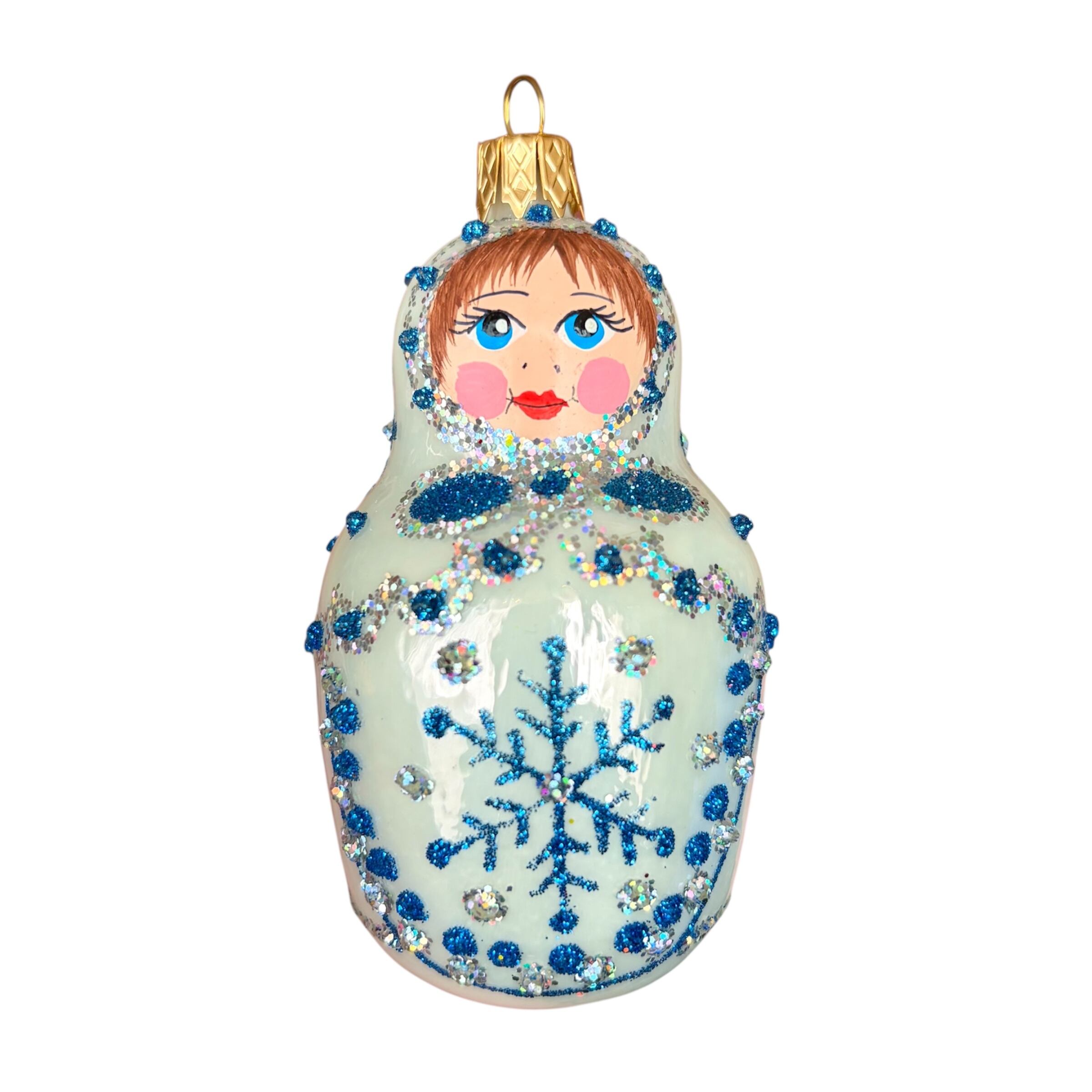 マトリョーシカのオーナメントには、ラメを装飾する際の下描き線(黒い線)が残っていたりはみ出ている場合があります。割れではありませんためご了承ください。
