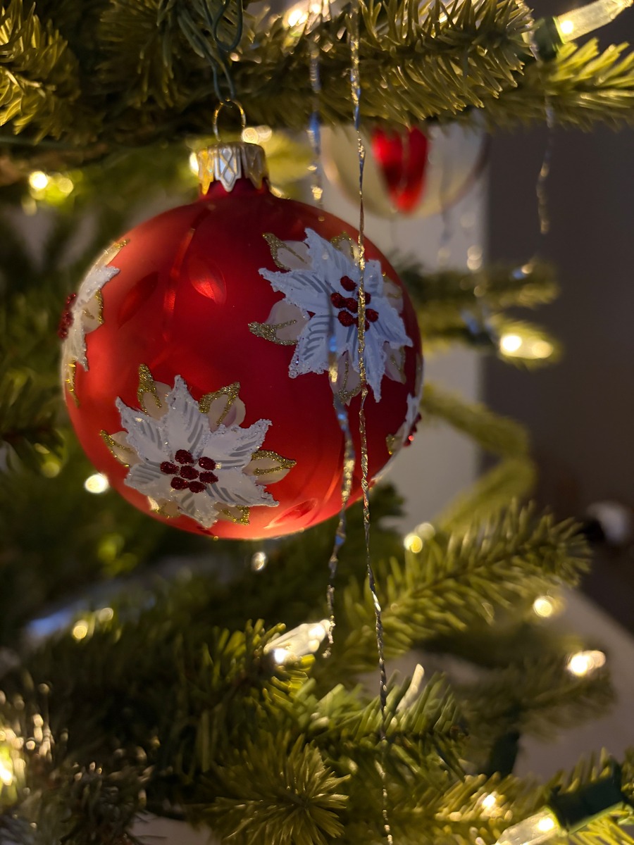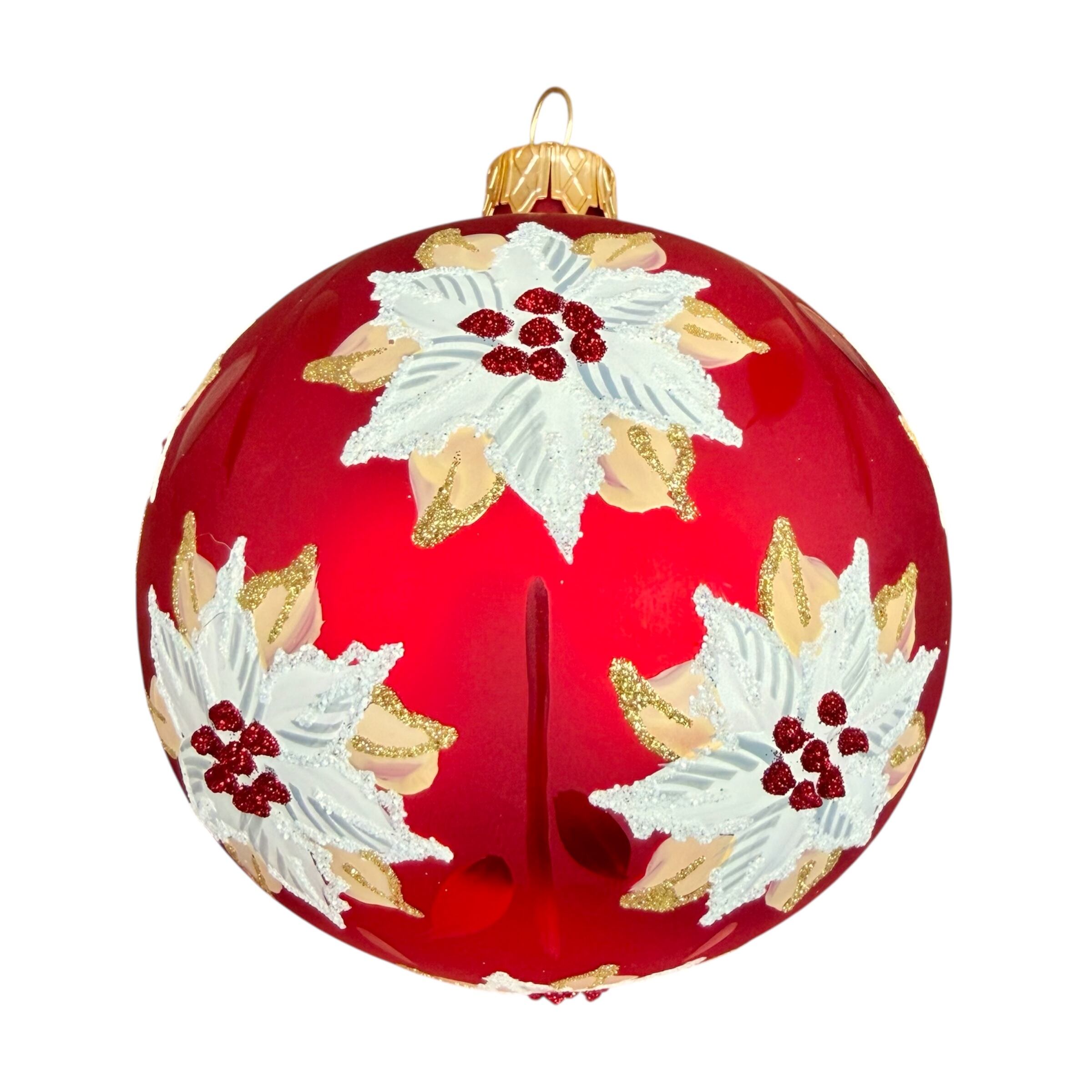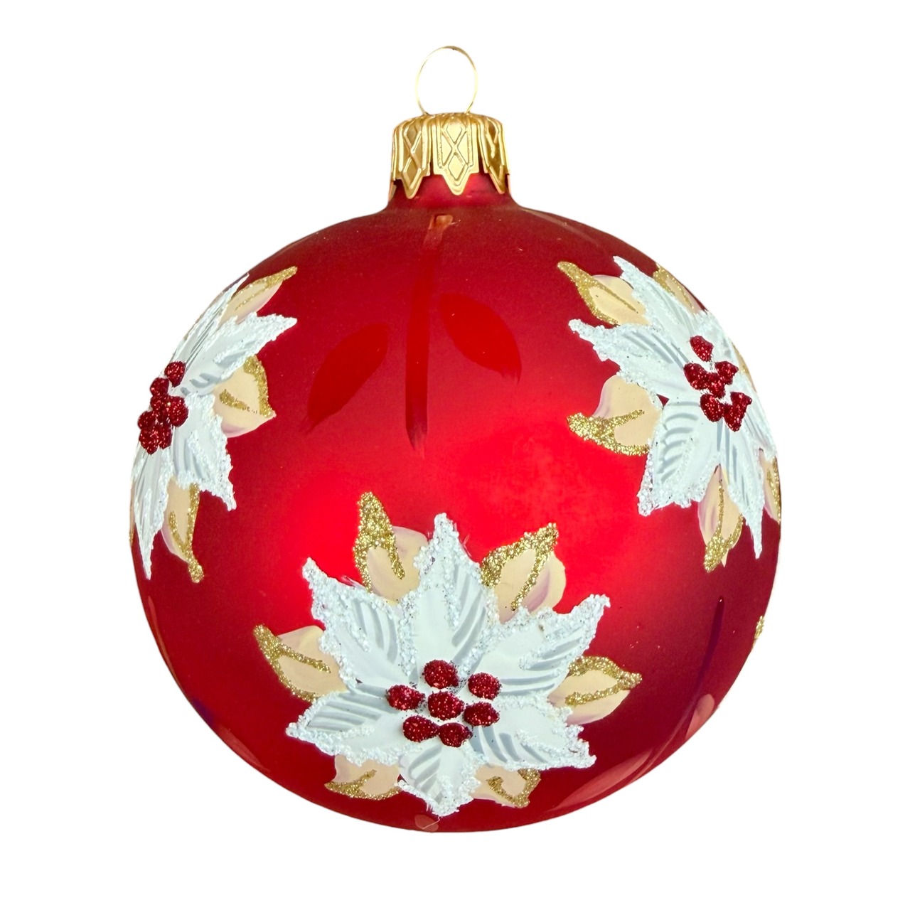 ポーランド製 8cmポインセチアボール レッド ガラスオーナメント クリスマスオーナメント