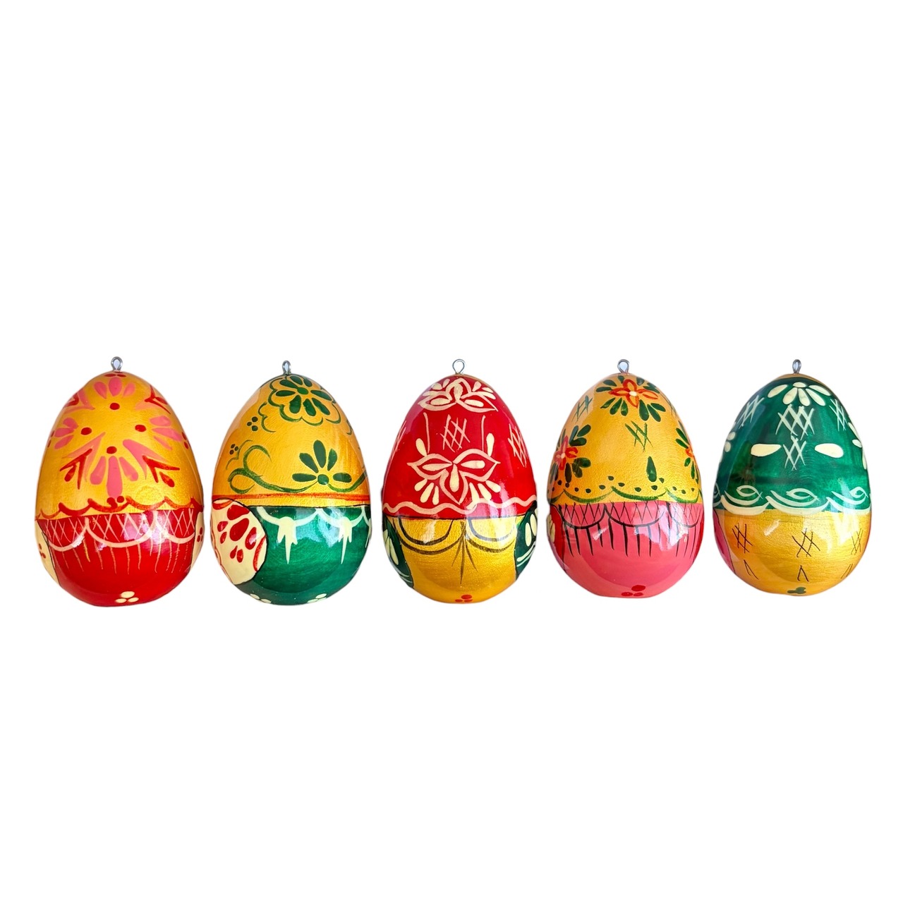 ウクライナ製木製オーナメント 伝統衣裳のエッグ型 5個セット クリスマスオーナメント