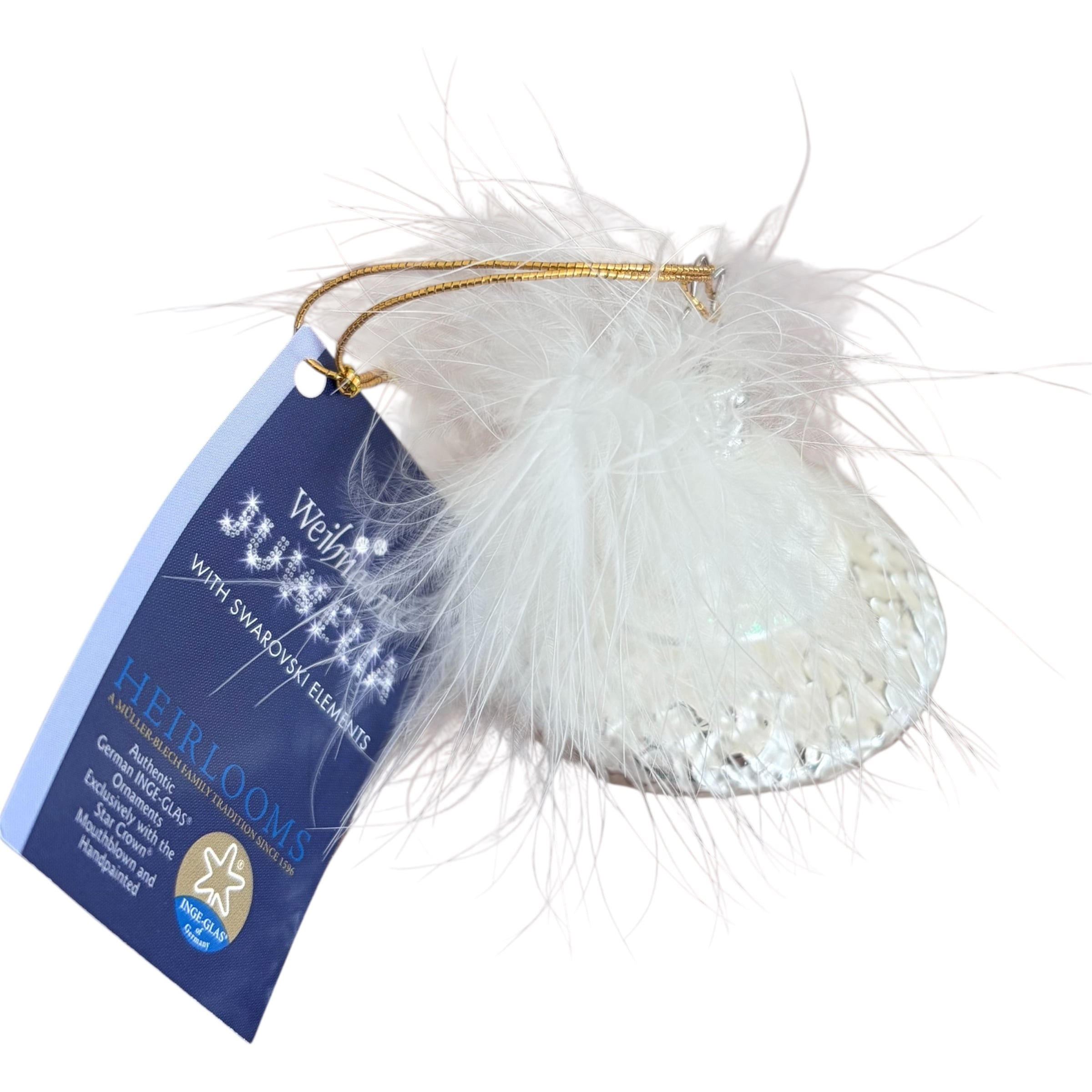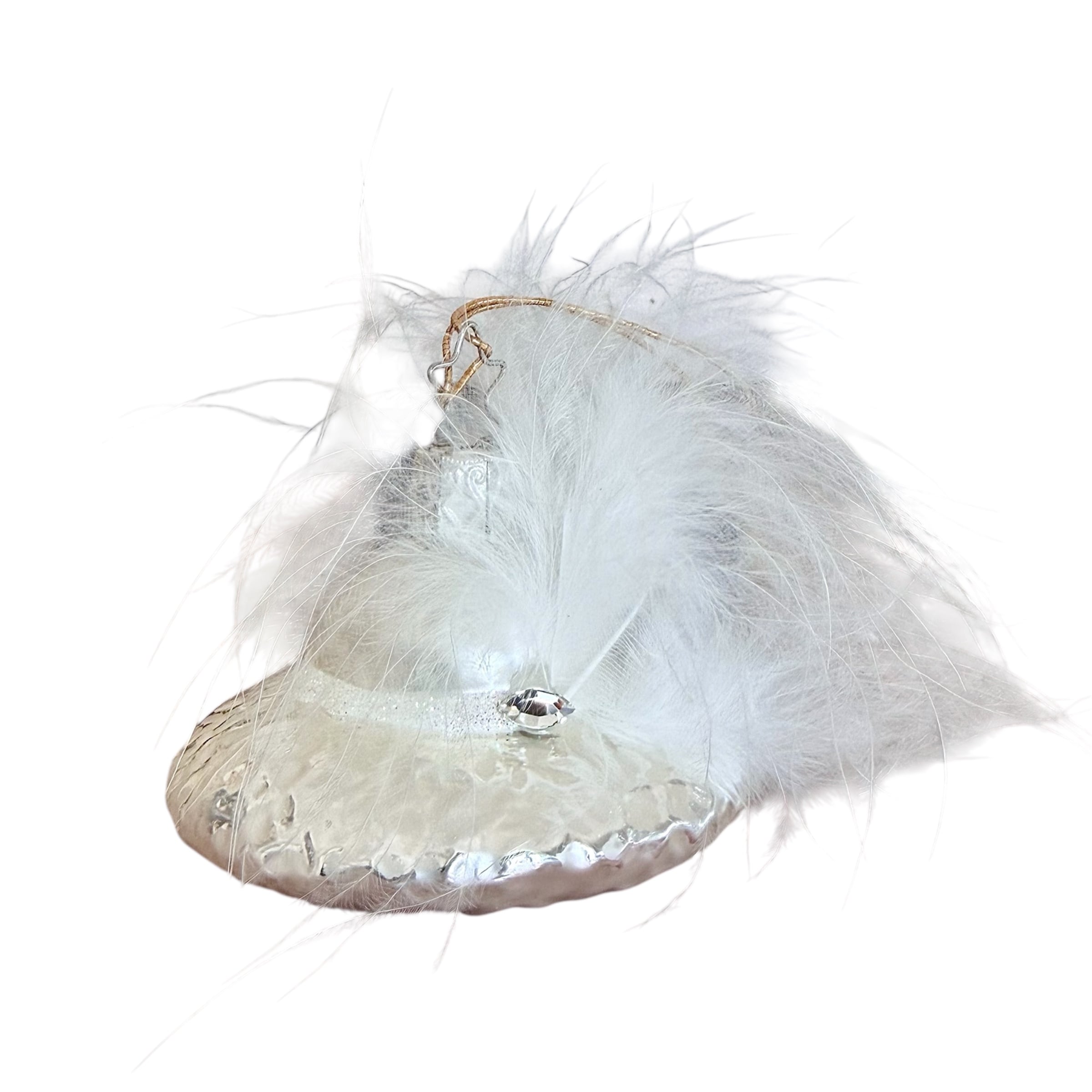 INGE-GLAS Vintage ドイツ製 フェザーハット ホワイト スワロフスキー ガラスオーナメント クリスマスオーナメント