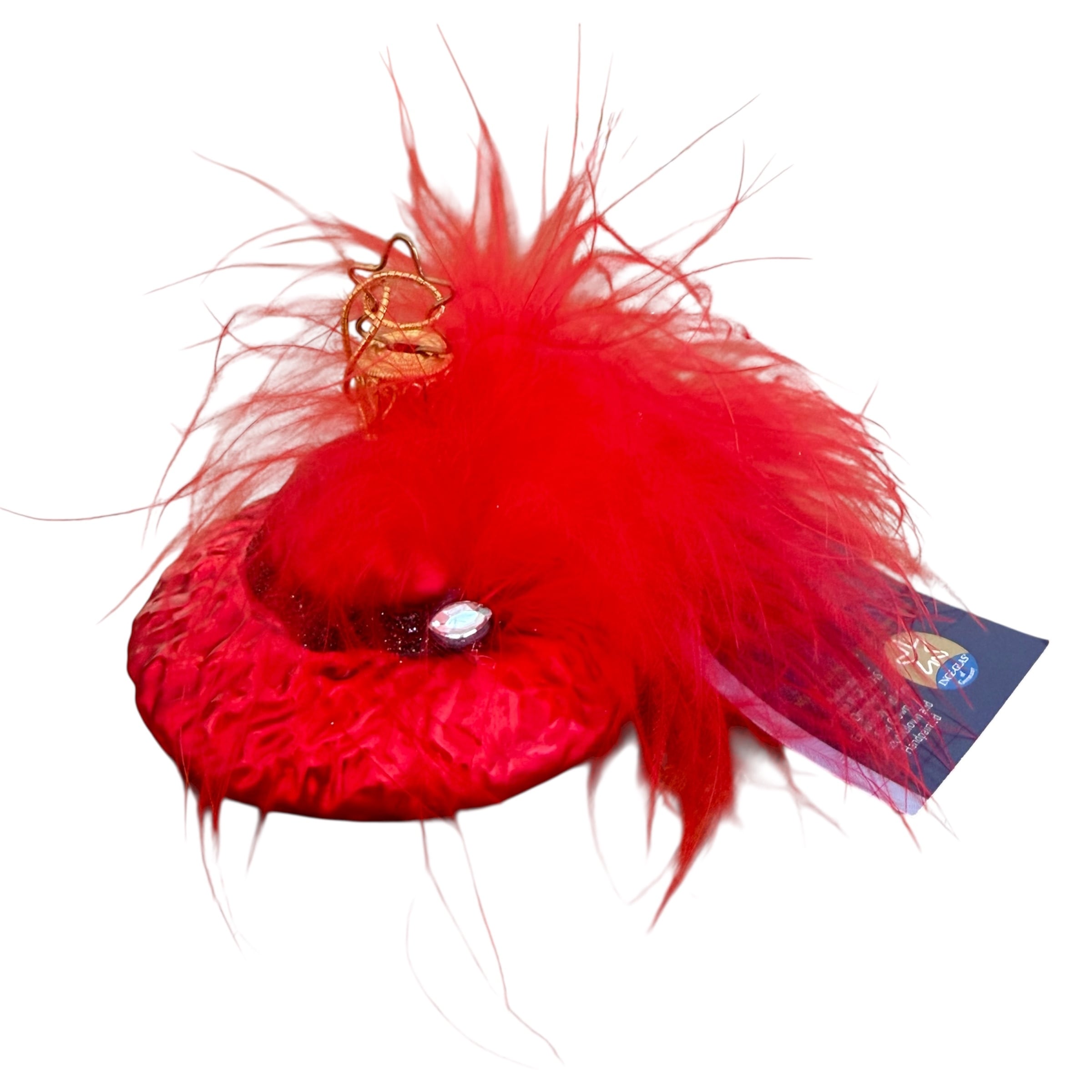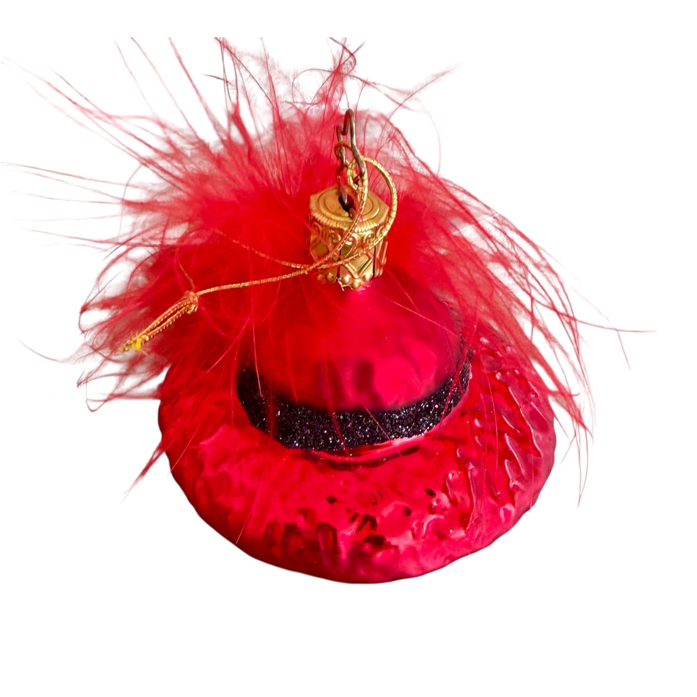 INGE-GLAS Vintage ドイツ製 フェザーハット レッド スワロフスキー ガラスオーナメント クリスマスオーナメント