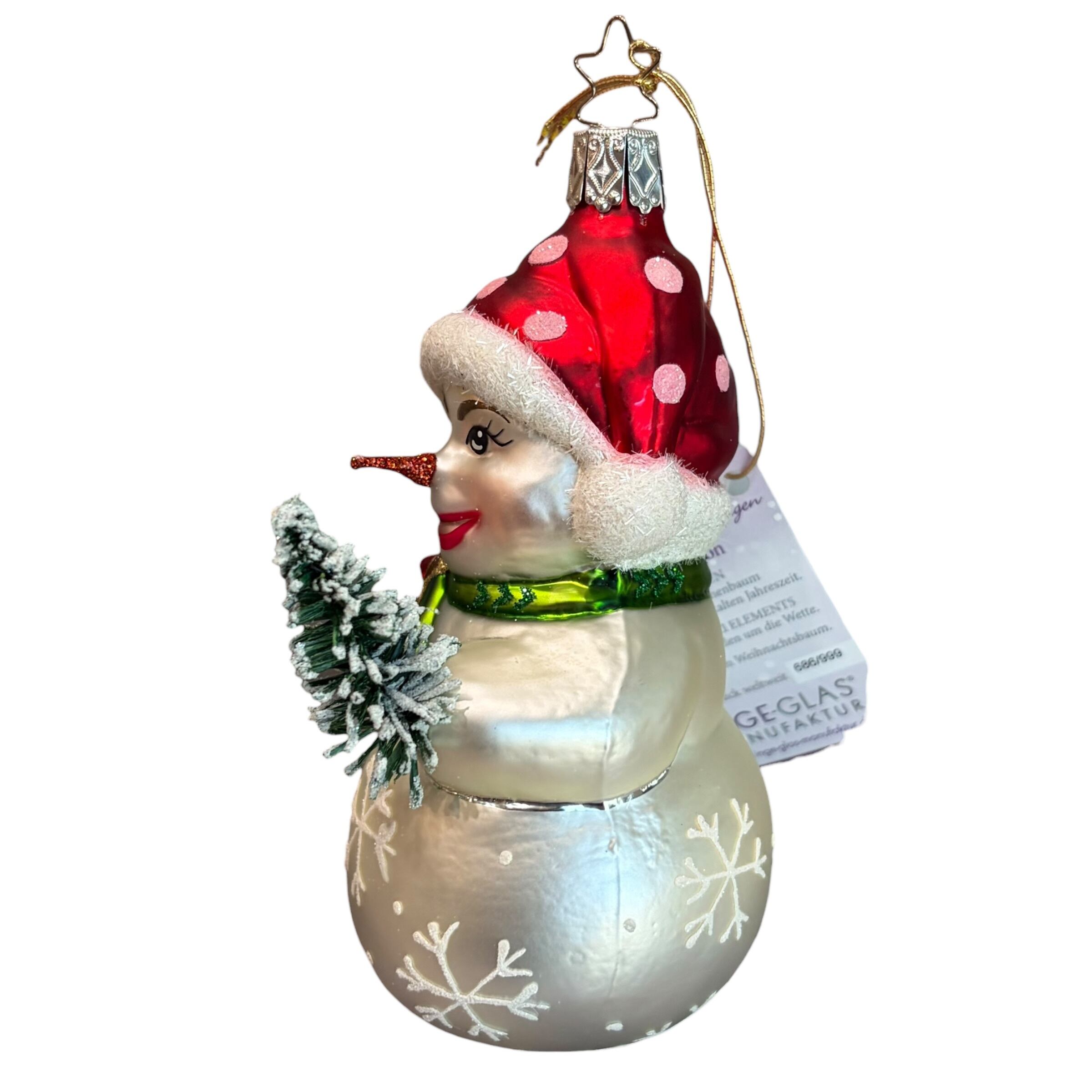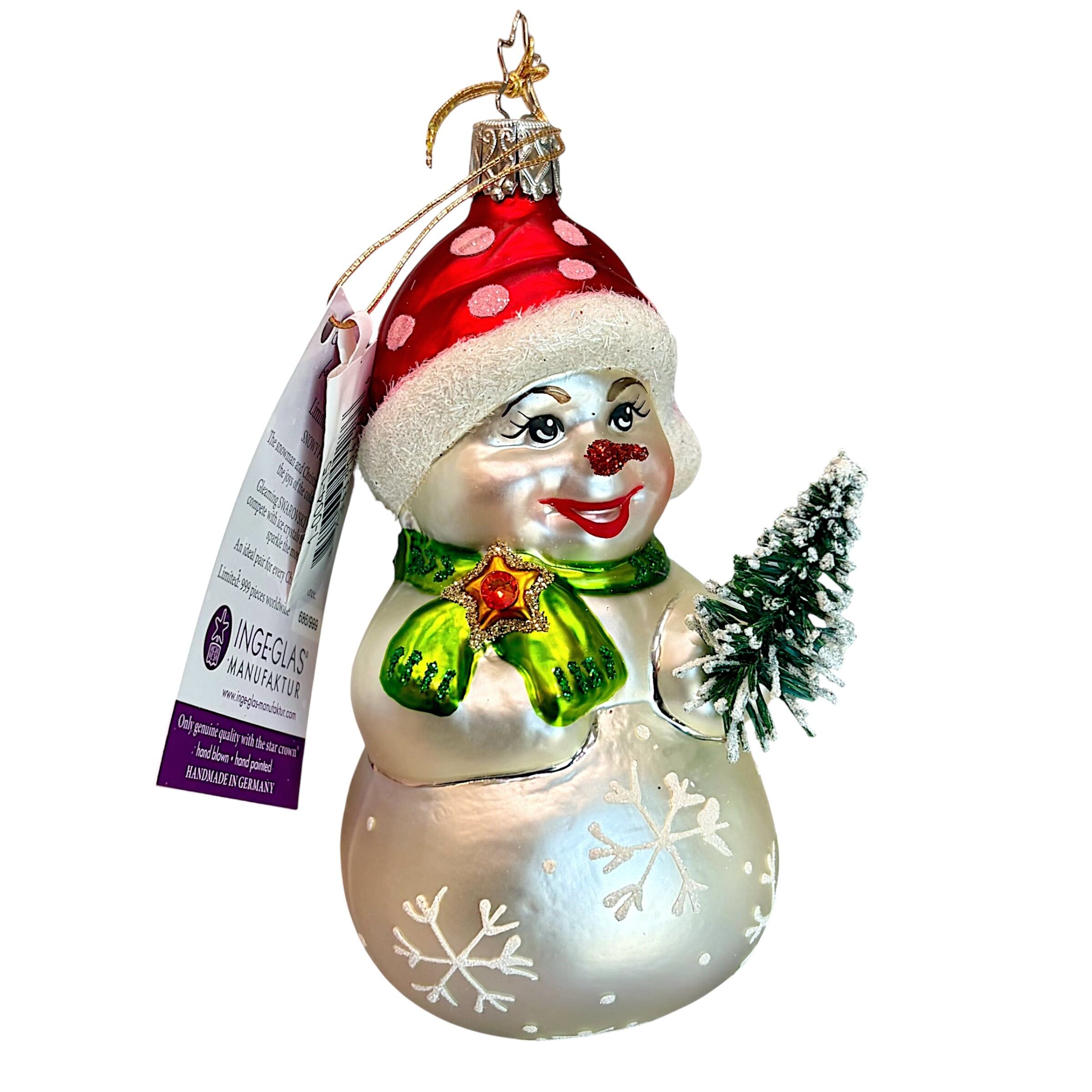 INGE-GLAS Vintage ドイツ 限定品 "雪だるまはお友だち" 686/999 サイン入り ガラスオーナメント クリスマスオーナメント