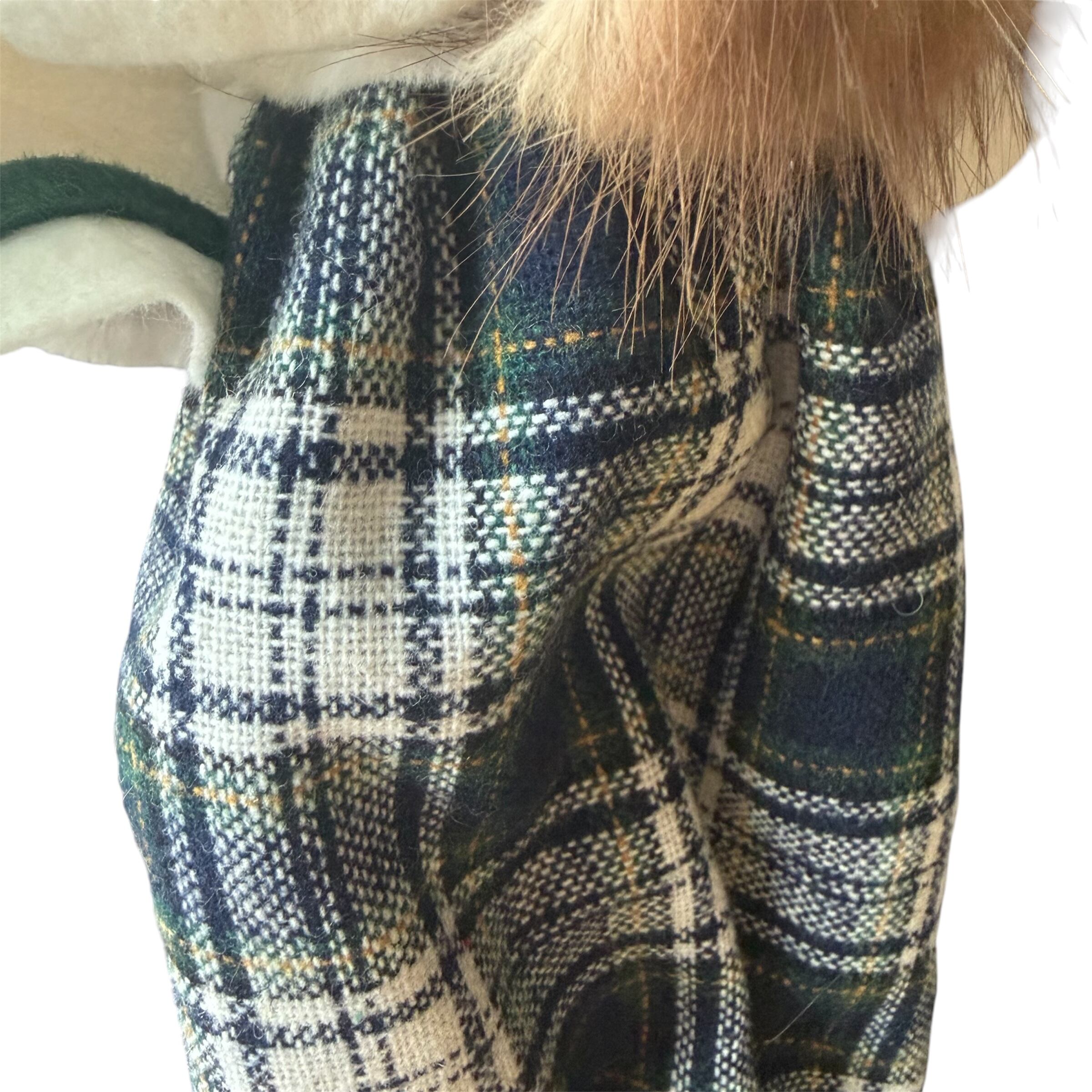 あたたかそうな服装に身を包んだ女性が、クリスマスキャロルを歌っています。そして、手にはリアルファーで作られたマフ"Muff"。Muffとは、手を暖めるために使われていたもので、現代の首に巻くマフラーの起源でもあります。帽子のついたマントもなんともおしゃれであたたかそう。きっと寒い中、一生懸命キャロルを歌っているのでしょう。