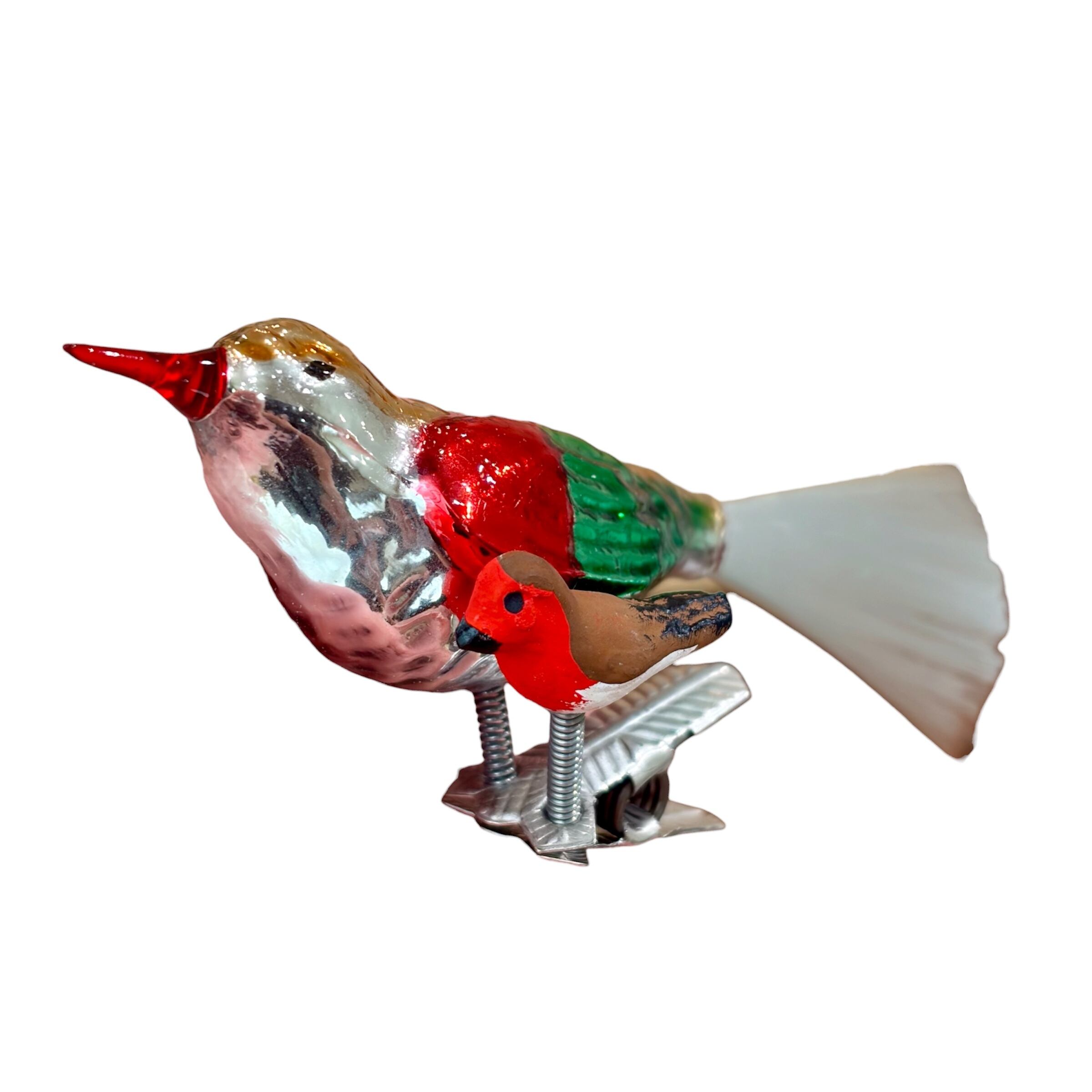 ドイツ製 鳥の親子 ガラスオーナメント クリスマスオーナメント