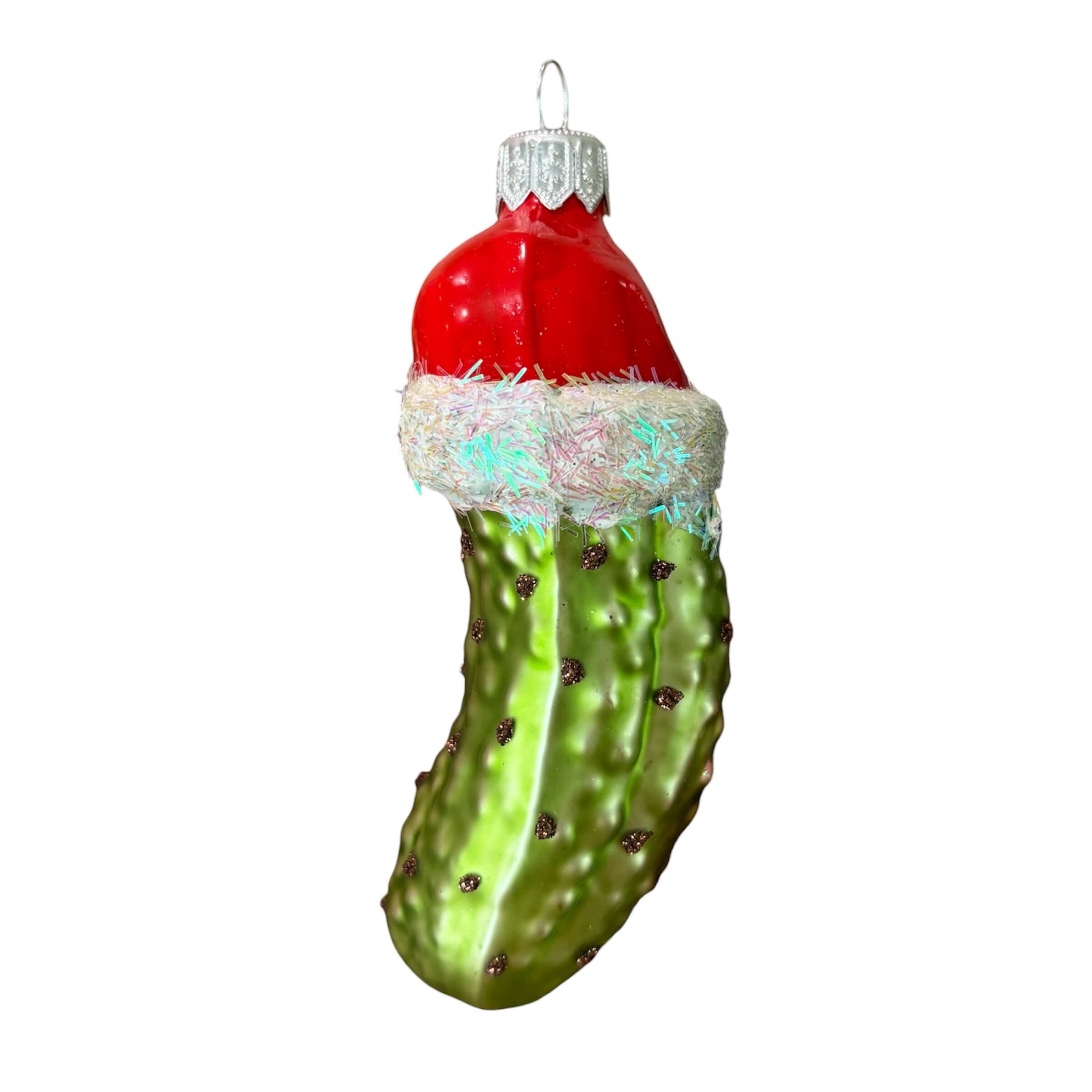 ドイツ製 サンタ帽のクリスマスピックル キュウリ ガラスオーナメント クリスマスオーナメント