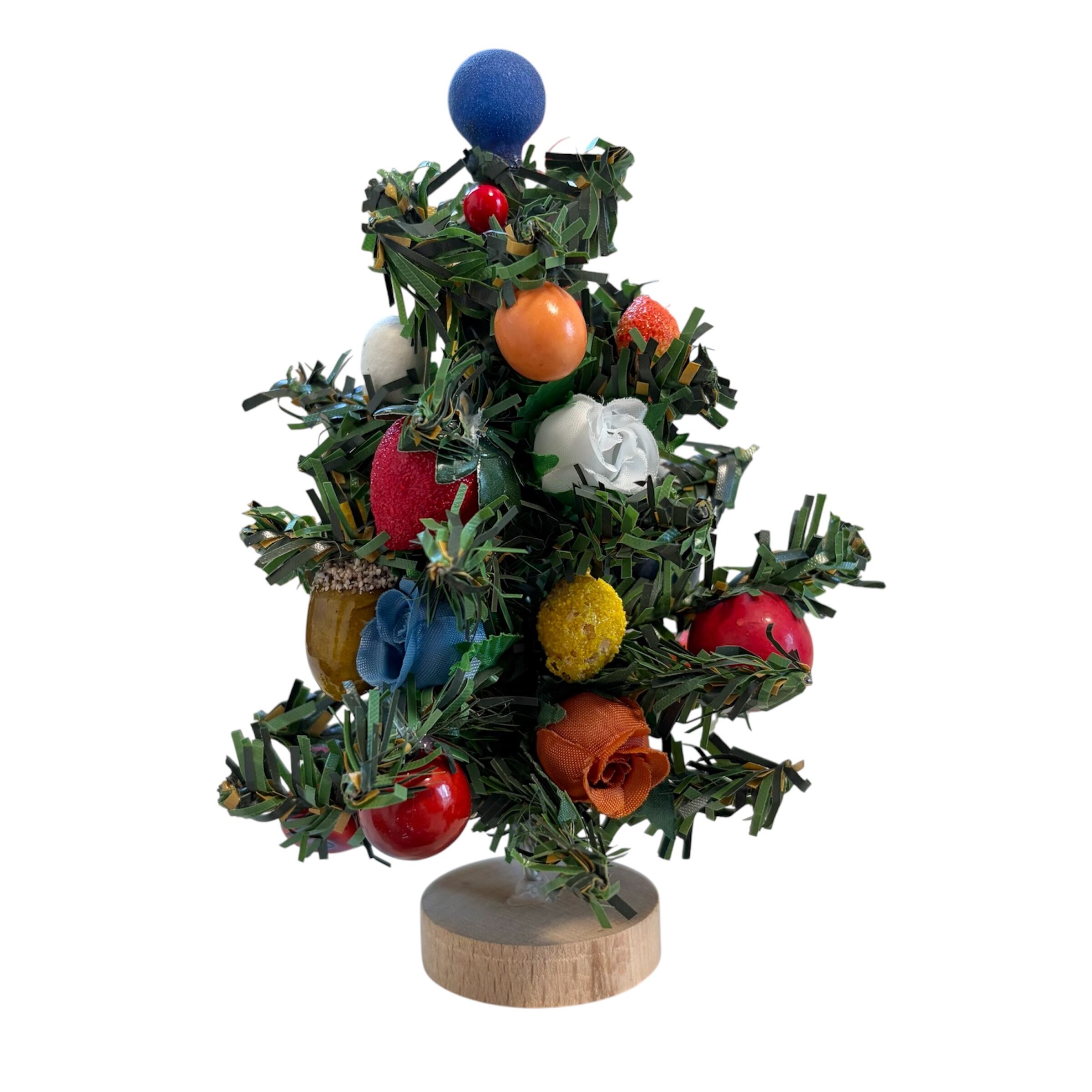 ハンドメイドで作られたノスタルジックなミニツリー。伝統的な製法で作られたコットン製のフルーツや、お花などでデコレーションされています。