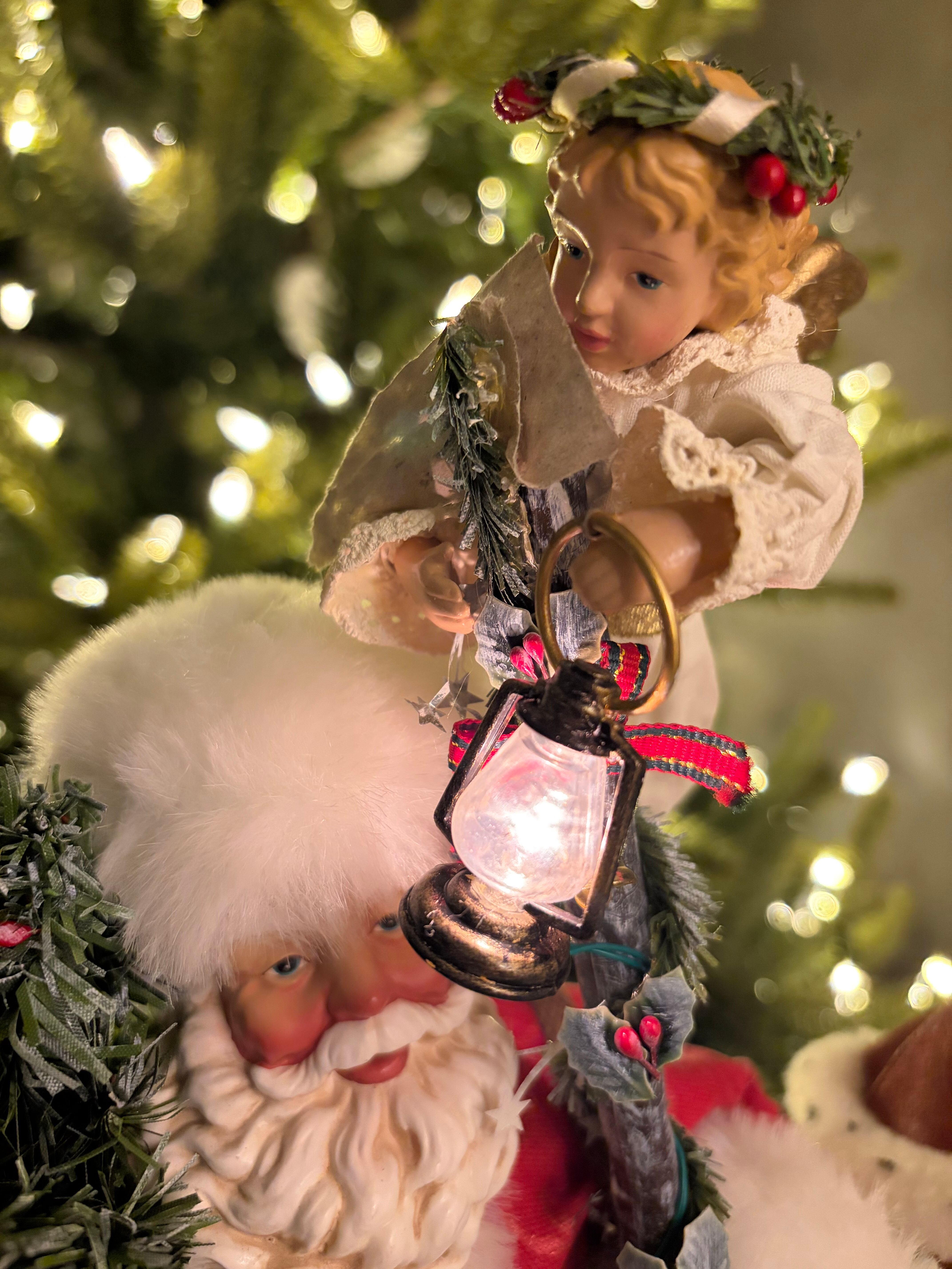 サンタドール "クリスマスツリーとランタンを持ったエンジェルとともに"