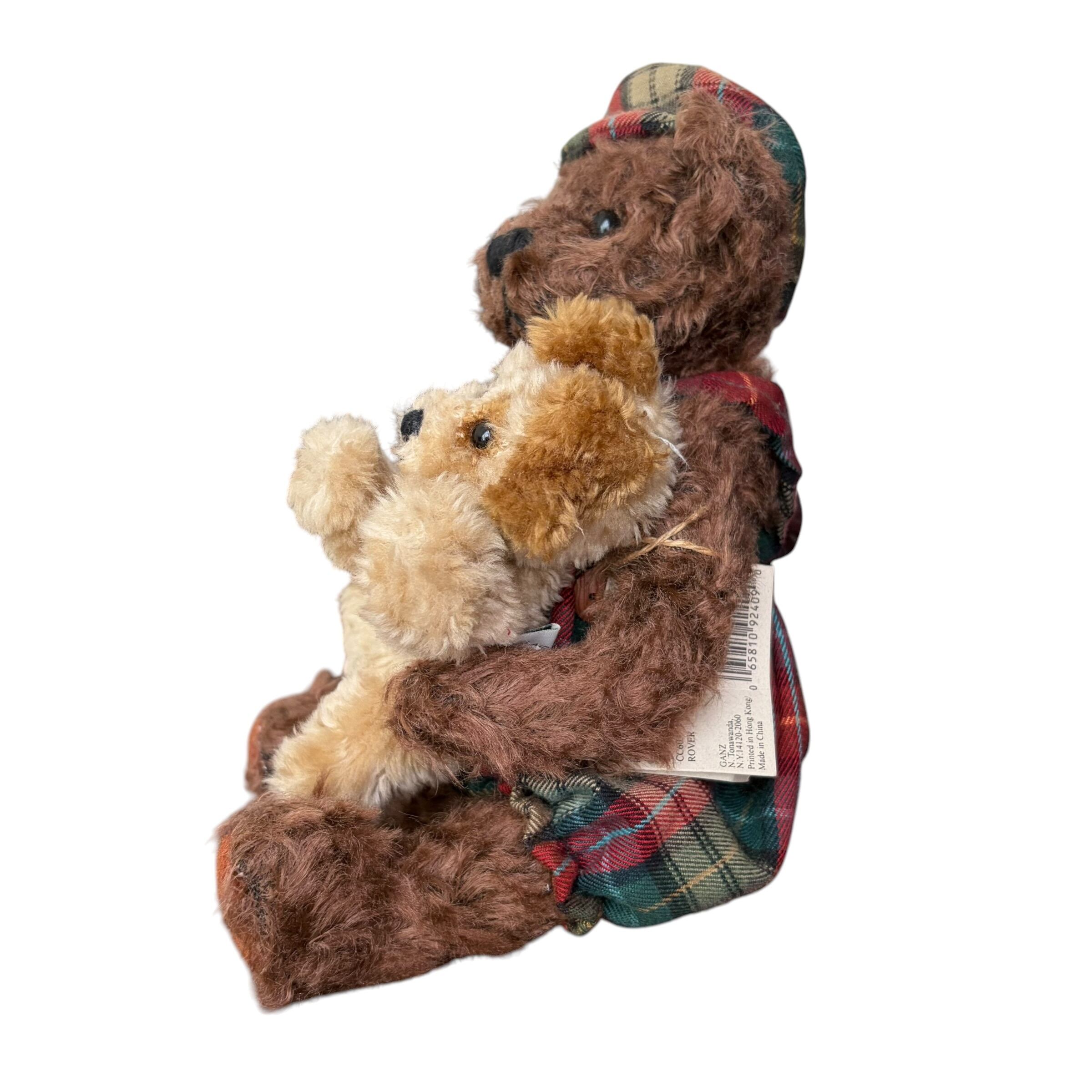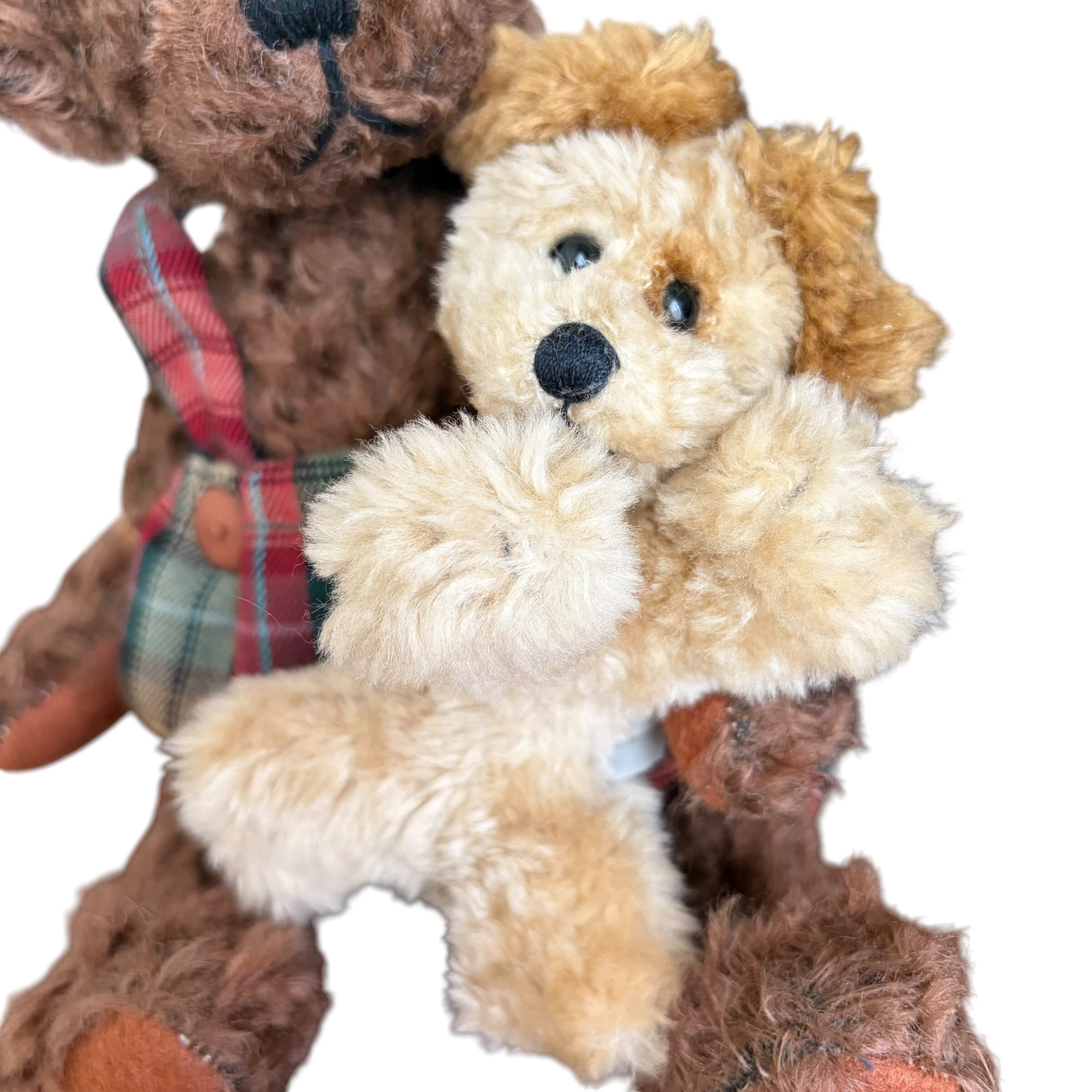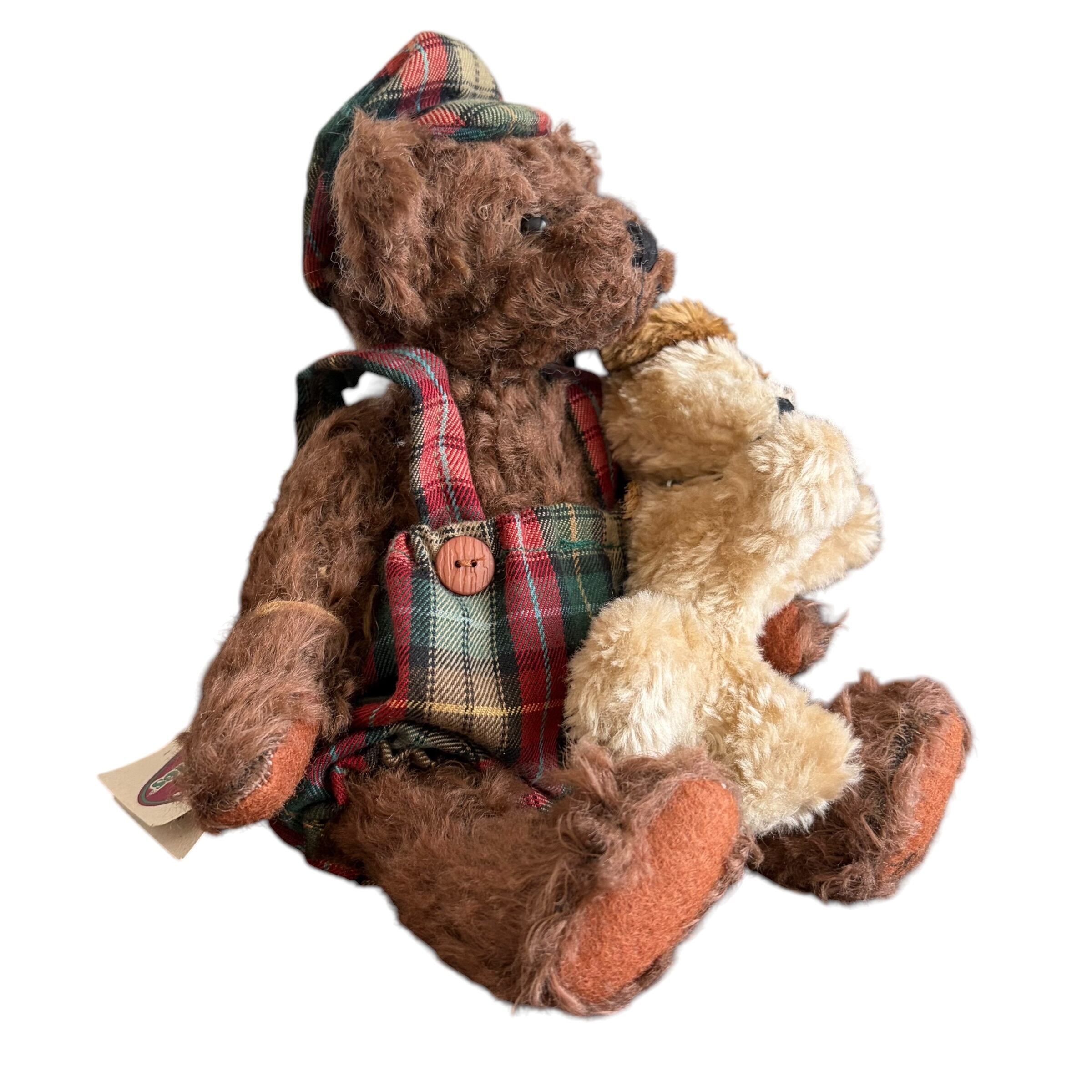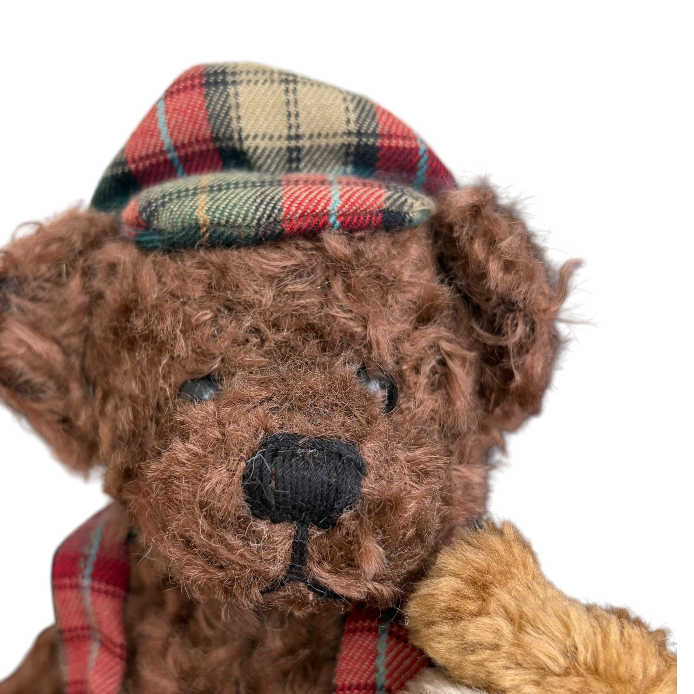 1996年に販売されたヴィンテージのテディベアです。手には犬を抱いていて、チェック柄のお召し物はクリスマスの雰囲気にもマッチします。