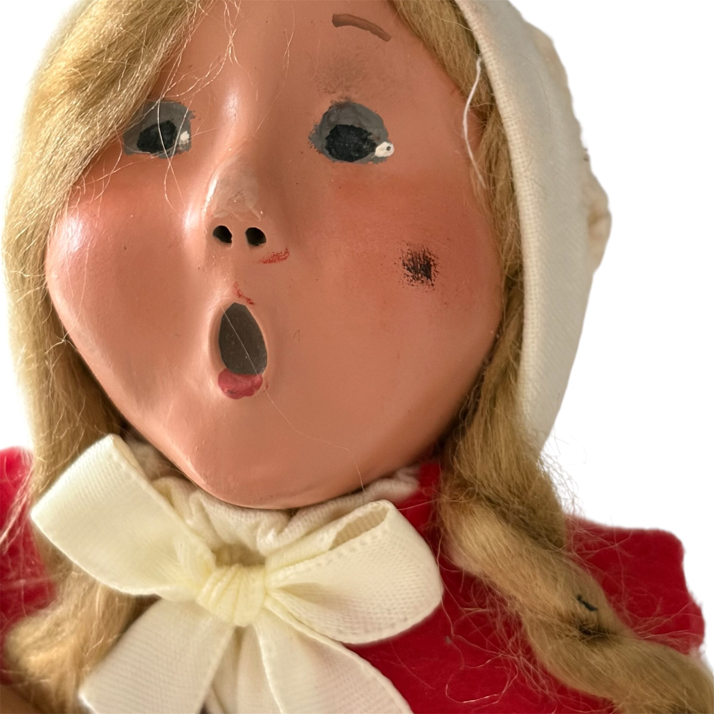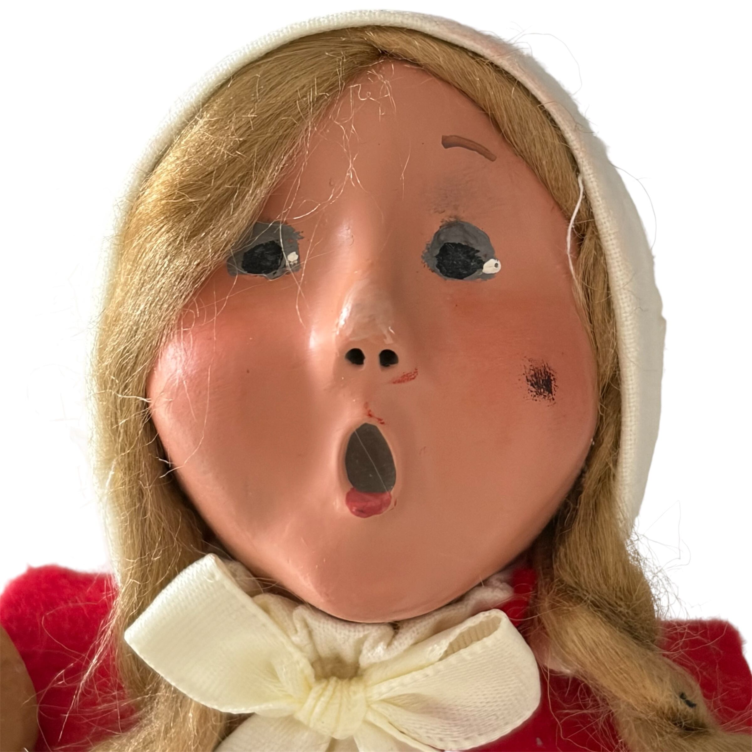 本品は検品に合格しなかったアウトレット品です。お顔の鼻、片頬がスレにより薄く黒くなっている部分がありました。お鼻はペイントとトップコートにて補正をしています。お写真を必ずご確認・ご了承の上ご購入をお願いいたします。