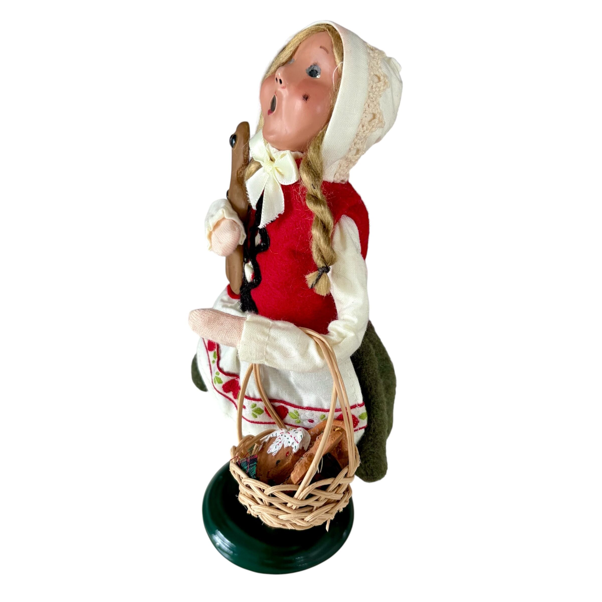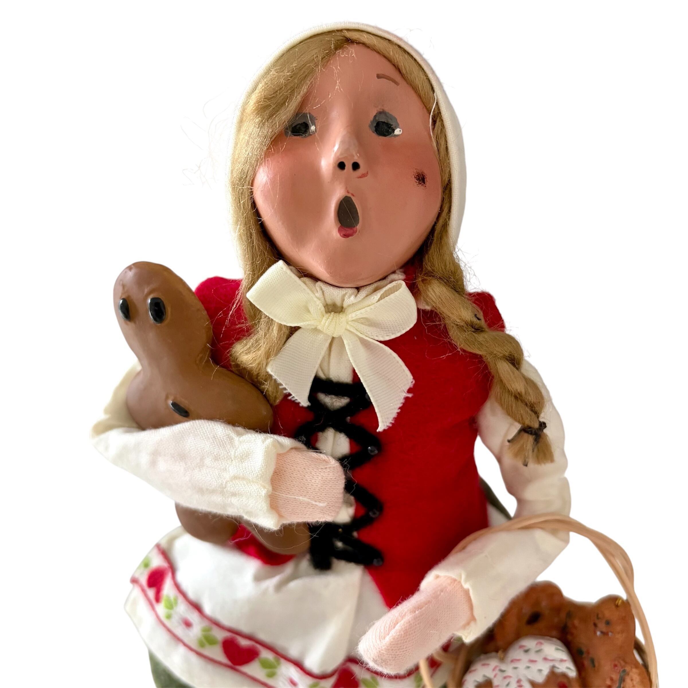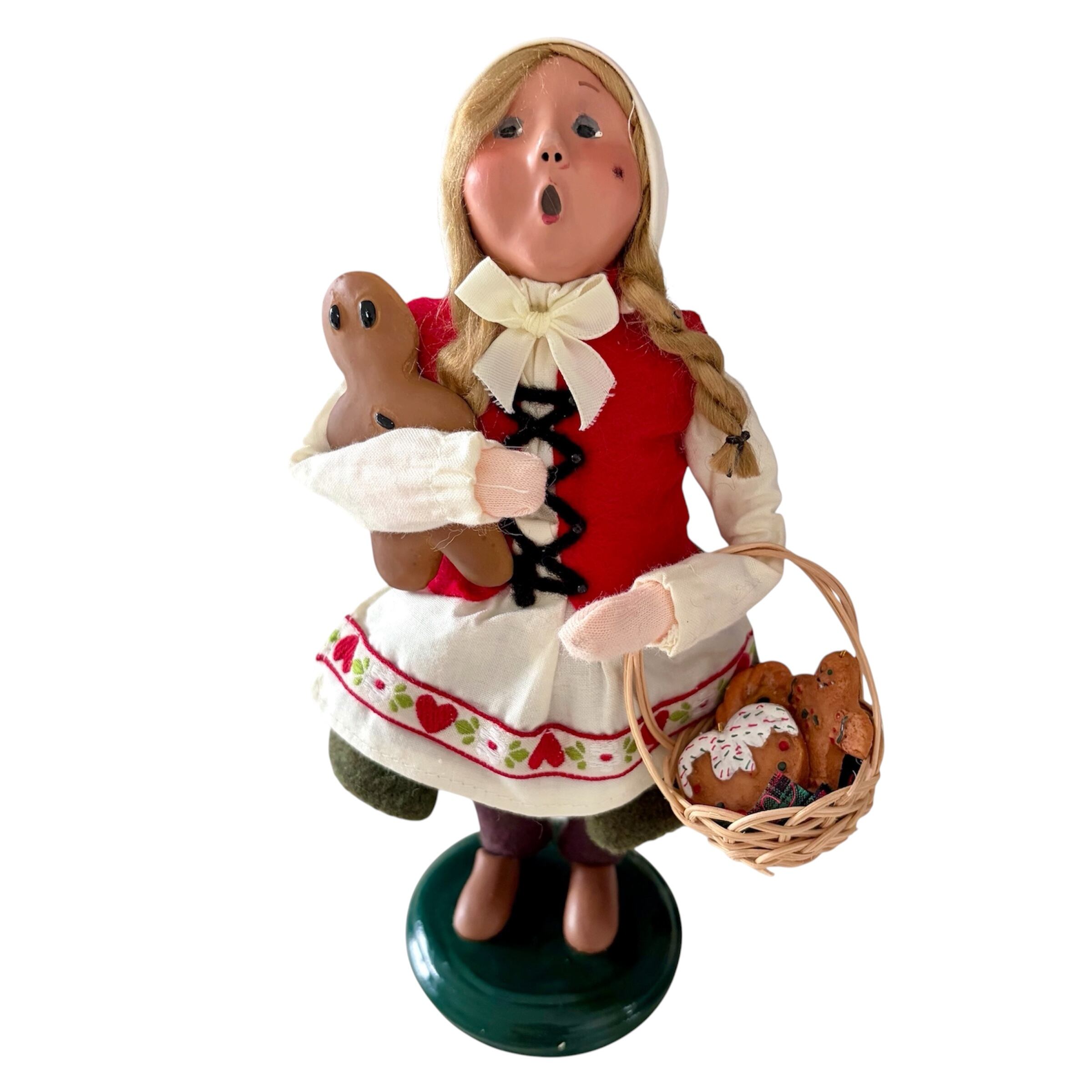 グリム童話"ヘンゼルとグレーテル"より。グレーテルがクリスマスキャロルを歌っています。魔女の住むお菓子の家でたくさんジンジャーブレッドクッキーをもらったようです...。グレーテルの服装はいつ見てもキュートです。