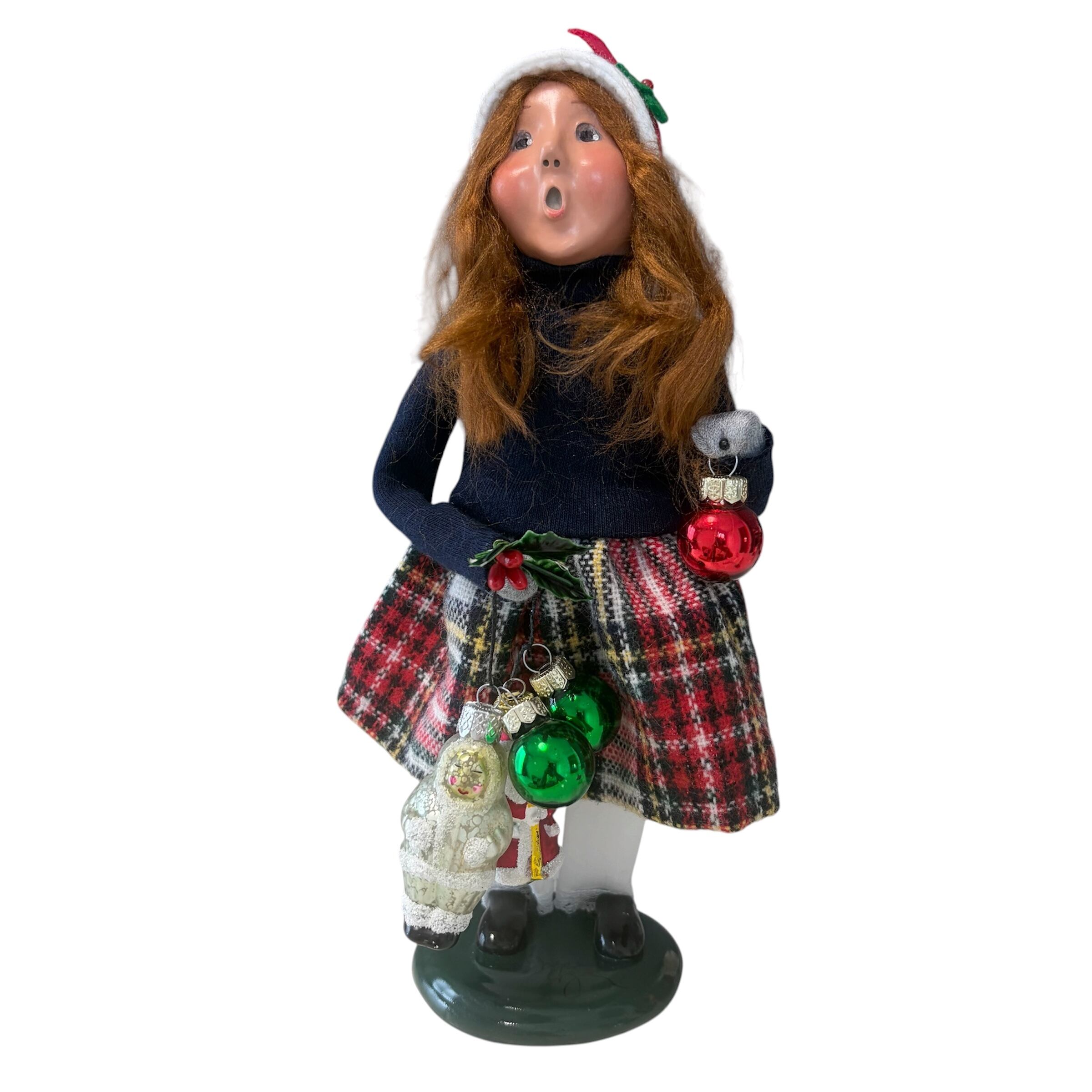 あたたかそうな服装に身を包んだ赤毛の少女が、クリスマスキャロルを歌っています。両手にはたくさんのガラスオーナメント。これからクリスマスツリーの飾り付けでしょうか?楽しいクリスマスになりそうです。